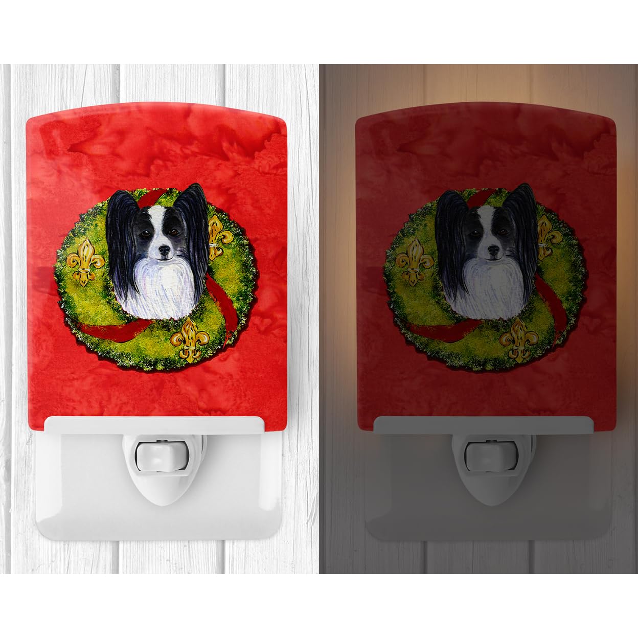 Caroline'S Treasures Papillon Christmas Wreath Ceramic Night Light, 6X4X3, Ul-Certified