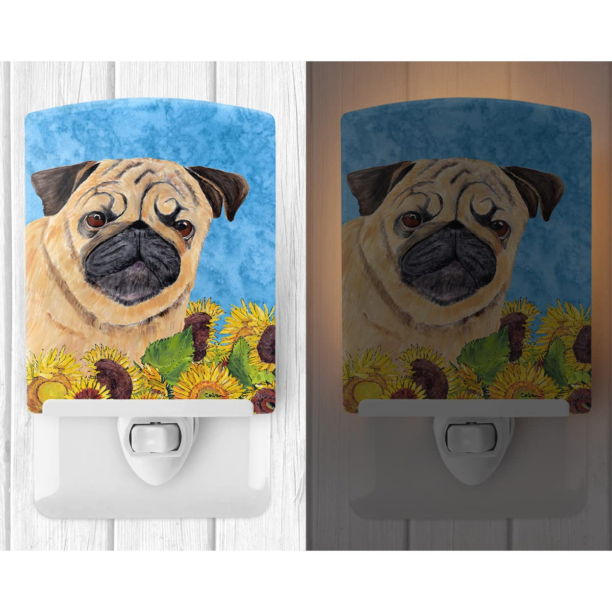 Caroline'S Treasures Pug In Summer Flowers Ceramic Night Light, Ul-Certified, 6X4X3"