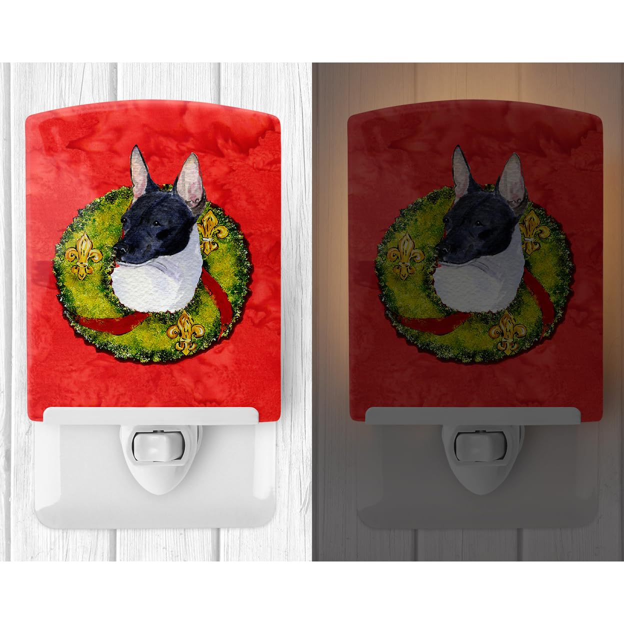 Caroline'S Treasures Rat Terrier Christmas Wreath Ceramic Night Light, Ul-Certified, 6X4X3