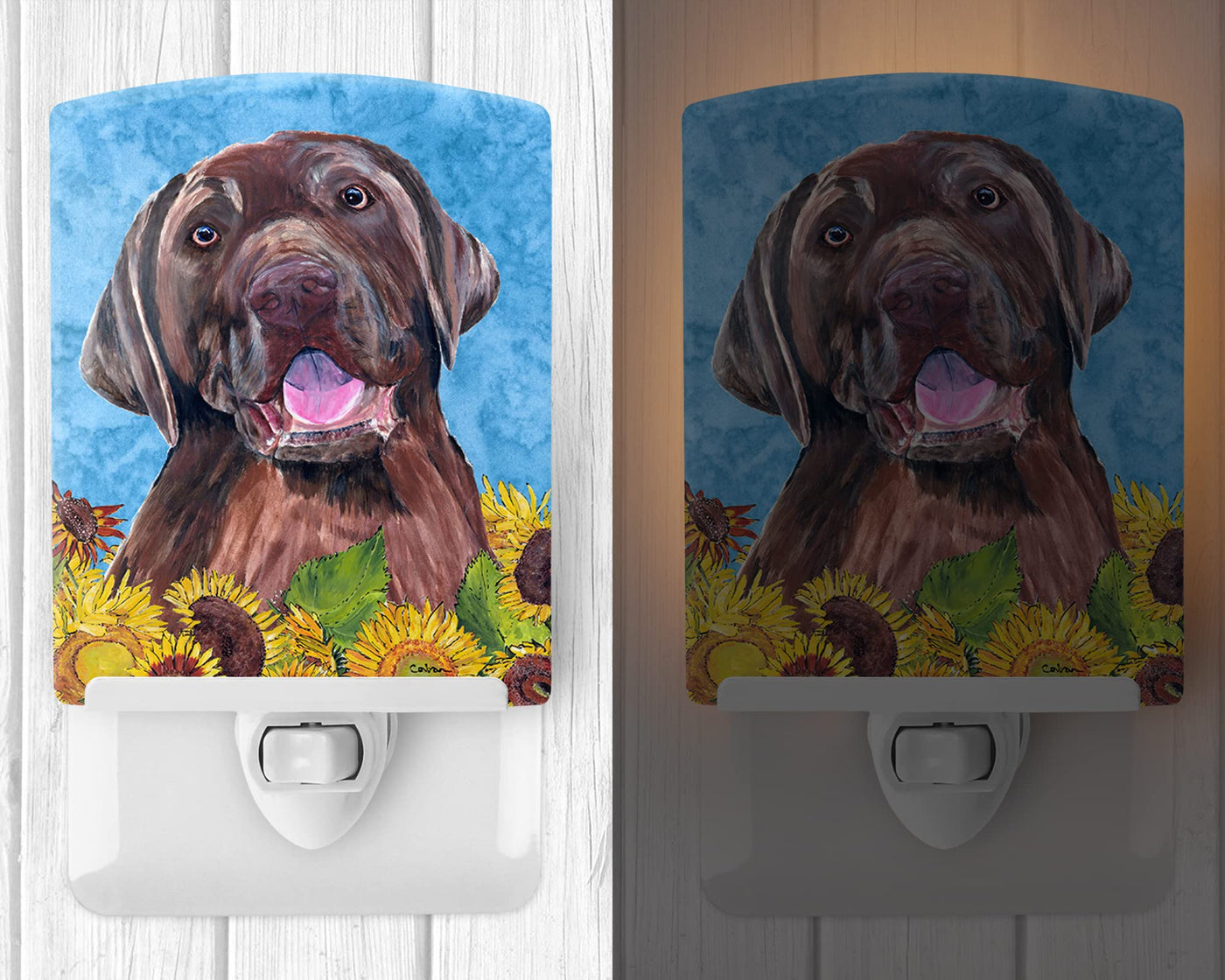 Caroline'S Treasures Sc9074Cnl Labrador In Summer Flowers Ceramic Night Light Compact, Ul-Certified, Ideal For Bedroom, Bathroom, Nursery, Hallway, Kitchen, 6X4X3, Multicolor