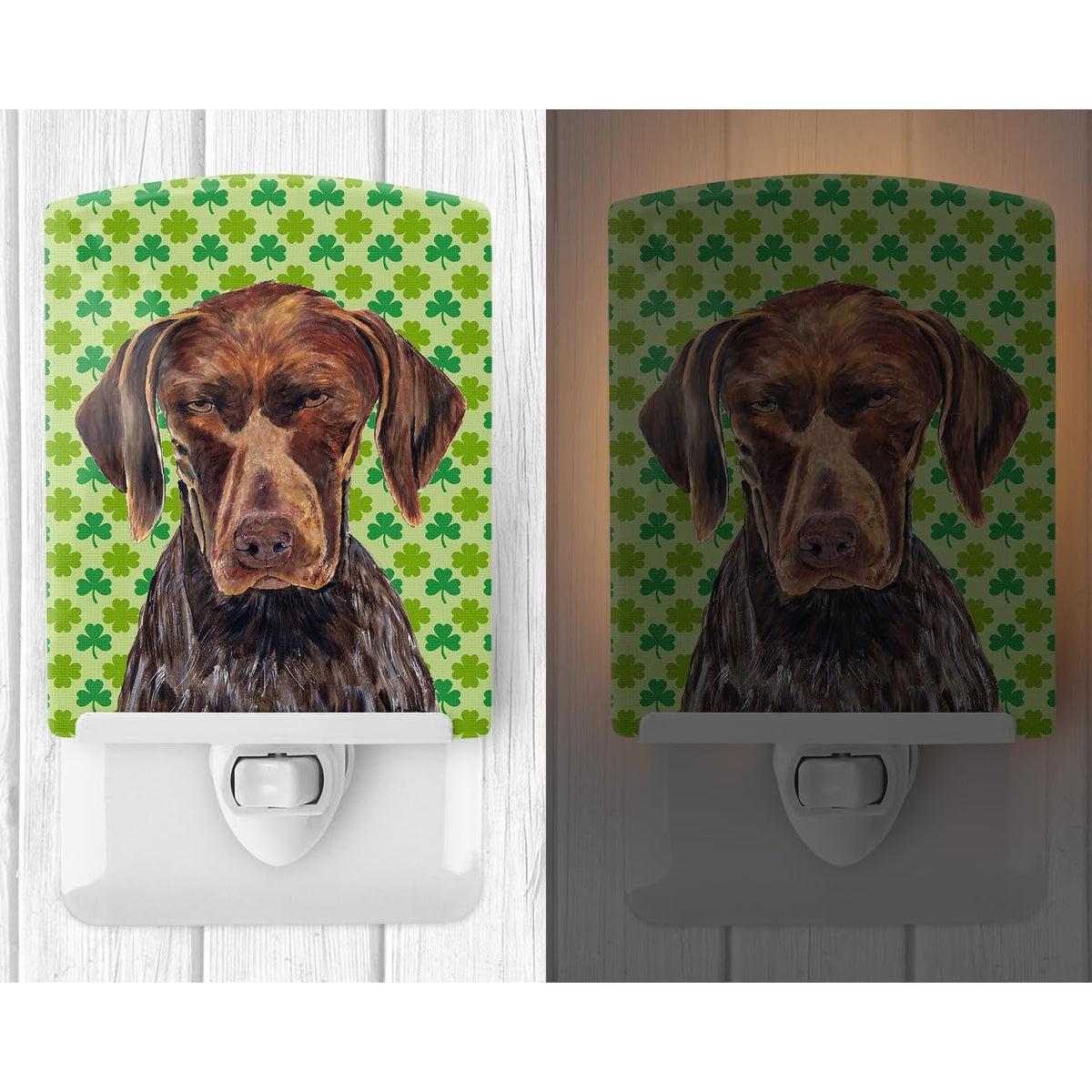 Caroline'S Treasures Sc9315Cnl German Shorthaired Pointer St. Patrick'S Day Shamrock Portrait Ceramic Night Light Compact, Ul-Certified, Ideal For Bedroom, Bathroom, Nursery, Hallway, Kitchen, 6X4X3,