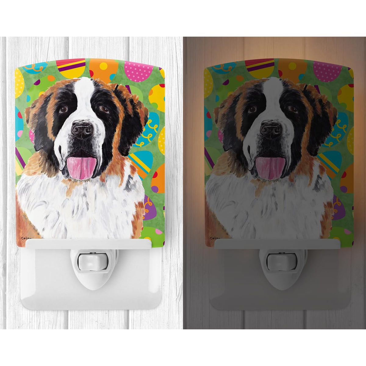 Caroline'S Treasures Sc9462Cnl Saint Bernard Easter Eggtravaganza Ceramic Night Light Compact, Ul-Certified, Ideal For Bedroom, Bathroom, Nursery, Hallway, Kitchen, 6X4X3, Multicolor