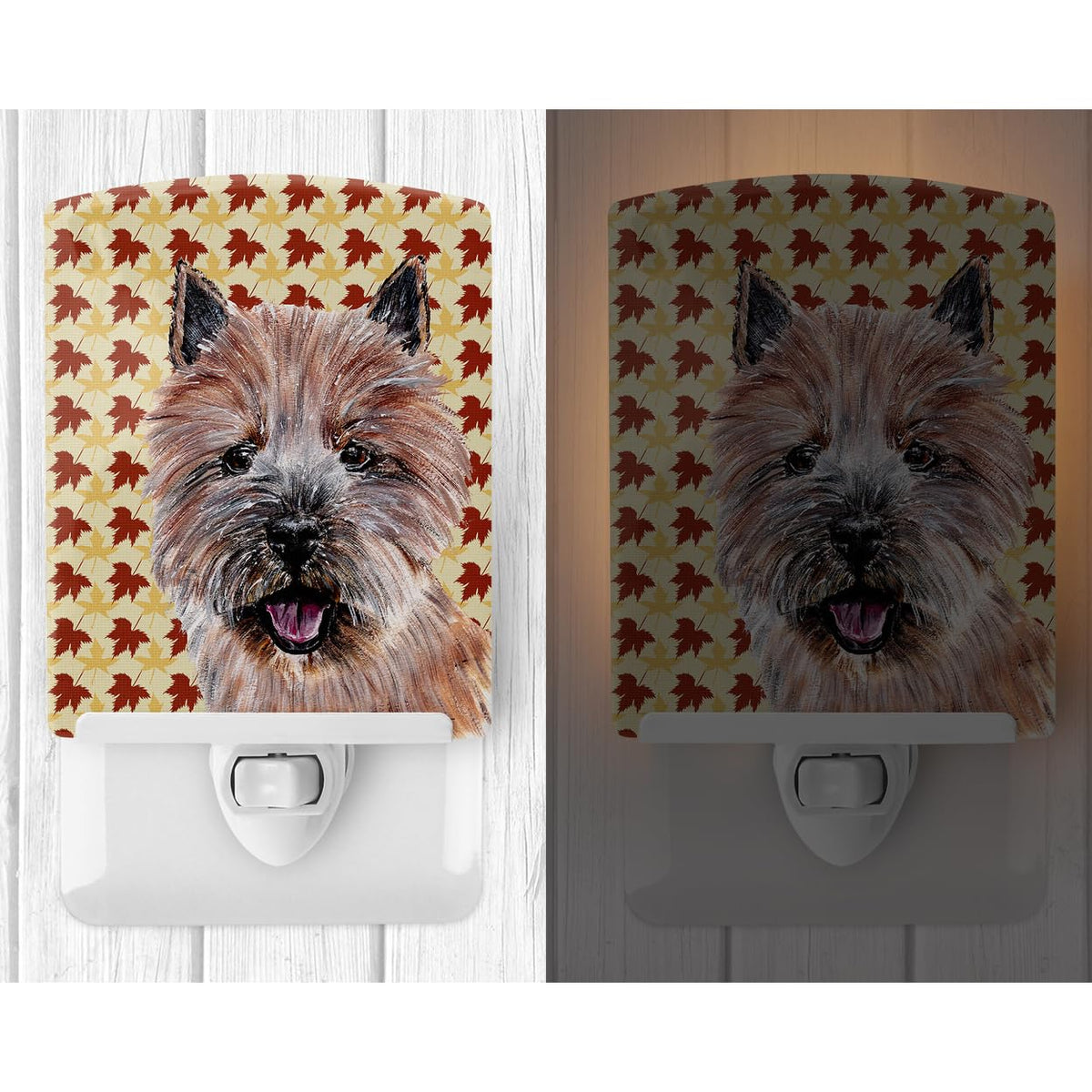 Caroline'S Treasures Sc9686Cnl Norwich Terrier Fall Leaves Ceramic Night Light Compact, Ul-Certified, Ideal For Bedroom, Bathroom, Nursery, Hallway, Kitchen, 6X4X3, Multicolor