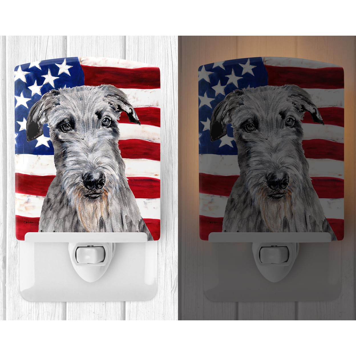 Caroline'S Treasures Scottish Deerhound Ceramic Night Light With American Flag, 6X4X3, Multicolor