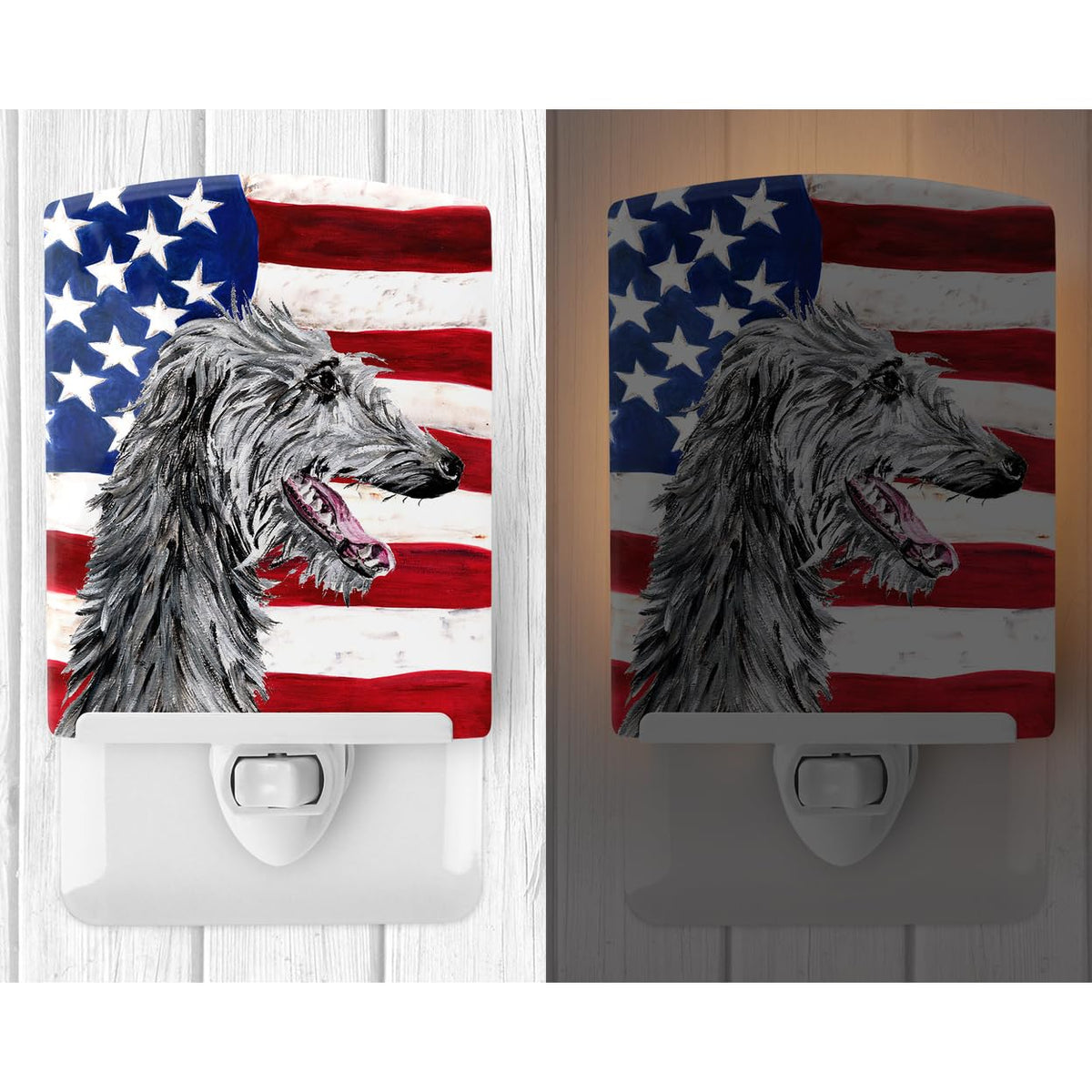 Caroline'S Treasures Scottish Deerhound Ceramic Night Light With American Flag, 6X4X3"