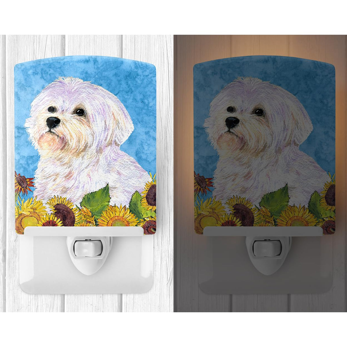 Caroline'S Treasures Ss4114Cnl Maltese In Summer Flowers Ceramic Night Light Compact, Ul-Certified, Ideal For Bedroom, Bathroom, Nursery, Hallway, Kitchen, 6X4X3, Multicolor