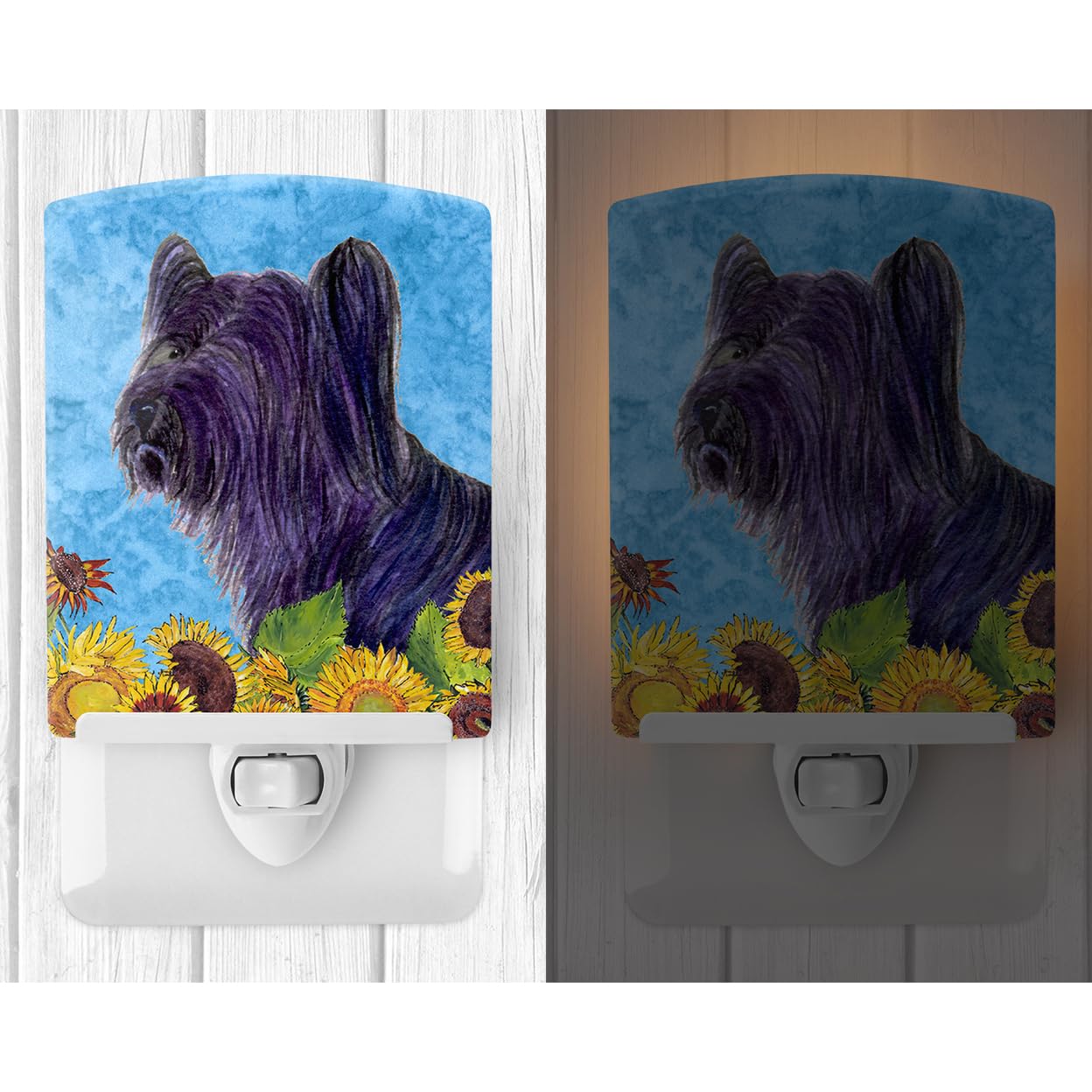 Caroline'S Treasures Ss4232Cnl Skye Terrier In Summer Flowers Ceramic Night Light Compact, Ul-Certified, Ideal For Bedroom, Bathroom, Nursery, Hallway, Kitchen, 6X4X3, Multicolor