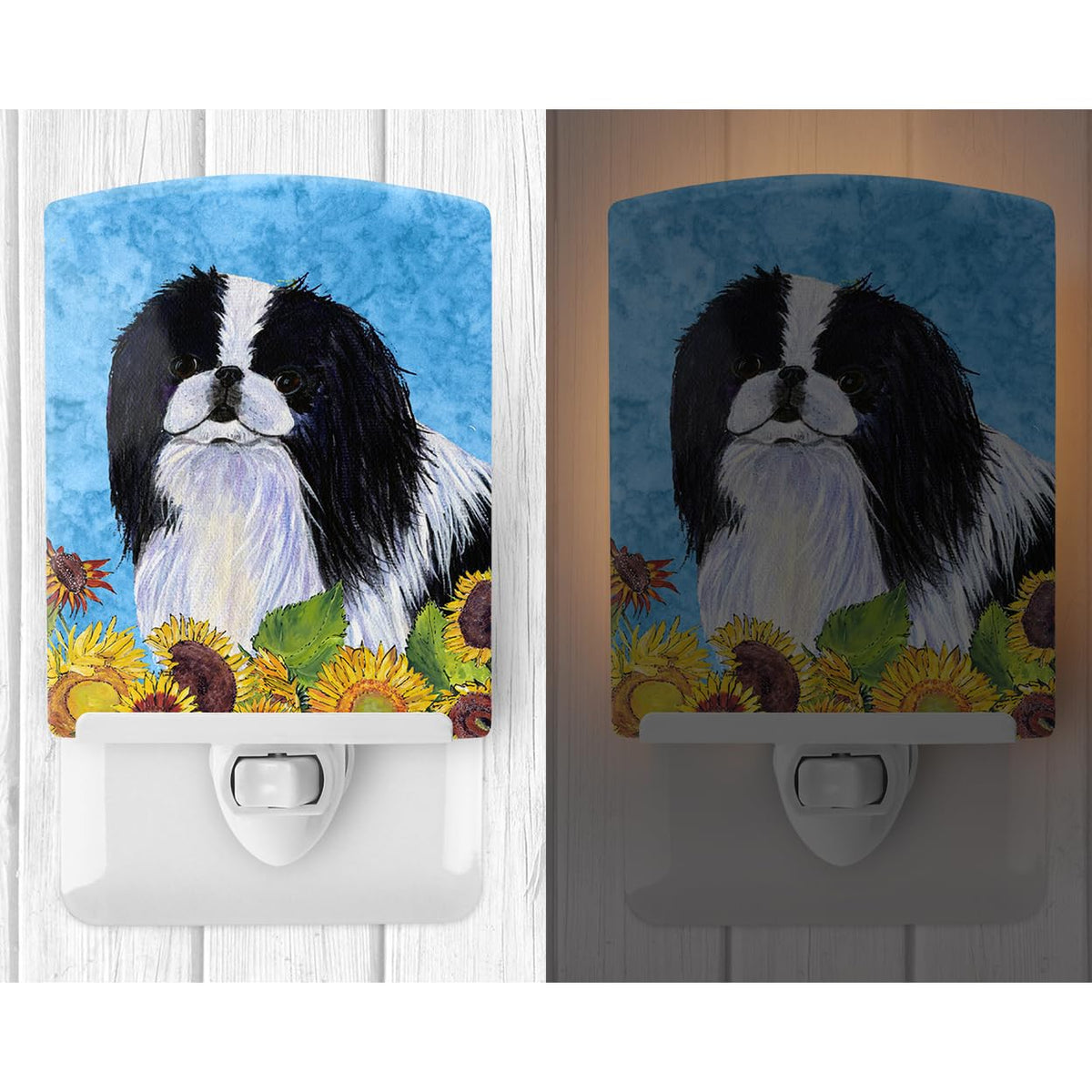 Caroline'S Treasures Ss4236Cnl Japanese Chin In Summer Flowers Ceramic Night Light Compact, Ul-Certified, Ideal For Bedroom, Bathroom, Nursery, Hallway, Kitchen, 6X4X3, Multicolor