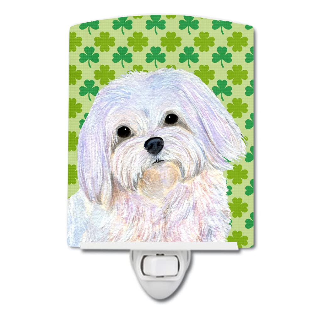 Caroline'S Treasures Ss4413Cnl Maltese St. Patrick'S Day Shamrock Portrait Ceramic Night Light Compact, Ul-Certified, Ideal For Bedroom, Bathroom, Nursery, Hallway, Kitchen, 6X4X3, Multicolor