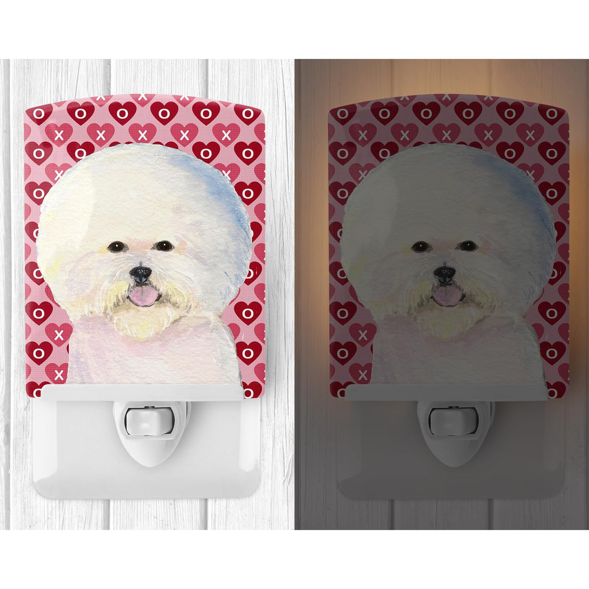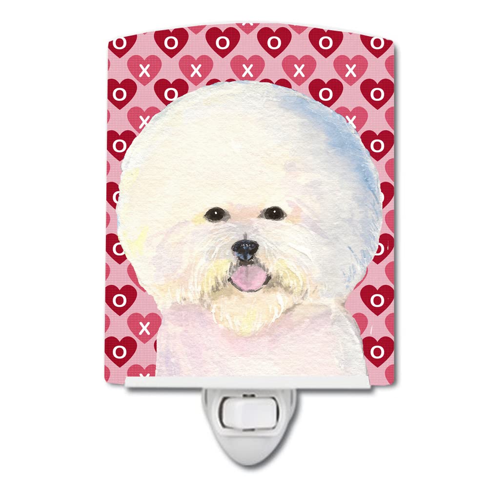 Caroline'S Treasures Ss4526Cnl Bichon Frise Hearts Love And Valentine'S Day Portrait Ceramic Night Light Compact, Ul-Certified, Ideal For Bedroom, Bathroom, Nursery, Hallway, Kitchen, 6X4X3, Multicol