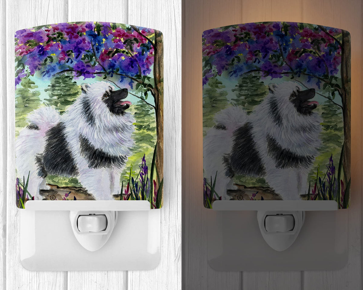 Caroline'S Treasures Ss8063Cnl Keeshond Ceramic Night Light Compact, Ul-Certified, Ideal For Bedroom, Bathroom, Nursery, Hallway, Kitchen, 6X4X3, Multicolor