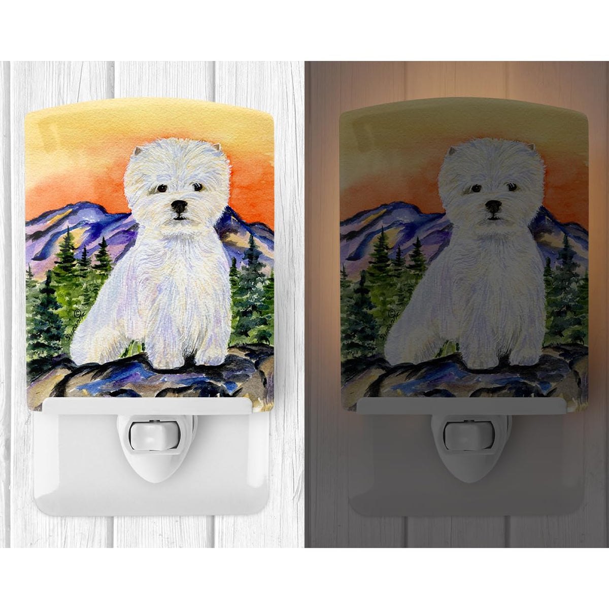 Caroline'S Treasures Ss8159Cnl Westie Ceramic Night Light Compact, Ul-Certified, Ideal For Bedroom, Bathroom, Nursery, Hallway, Kitchen, 6X4X3, Multicolor