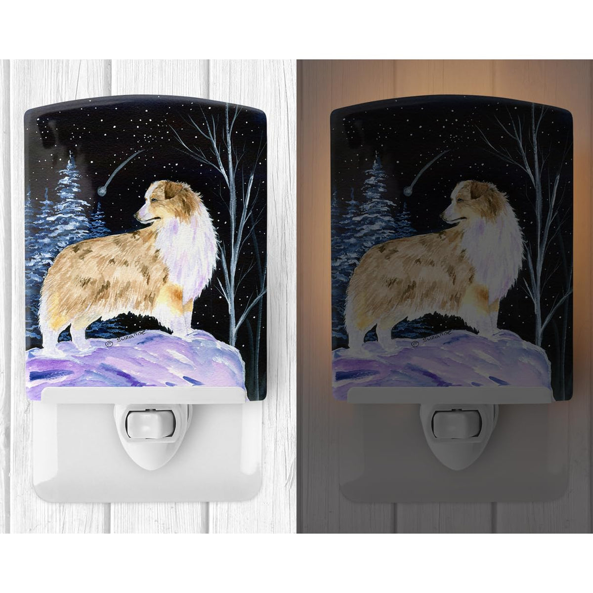 Caroline'S Treasures Ss8359Cnl Starry Night Australian Shepherd Ceramic Night Light Compact, Ul-Certified, Ideal For Bedroom, Bathroom, Nursery, Hallway, Kitchen, 6X4X3, Multicolor
