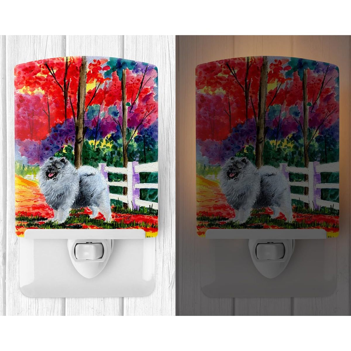 Caroline'S Treasures Ss8432Cnl Keeshond Ceramic Night Light Compact, Ul-Certified, Ideal For Bedroom, Bathroom, Nursery, Hallway, Kitchen, 6X4X3, Multicolor
