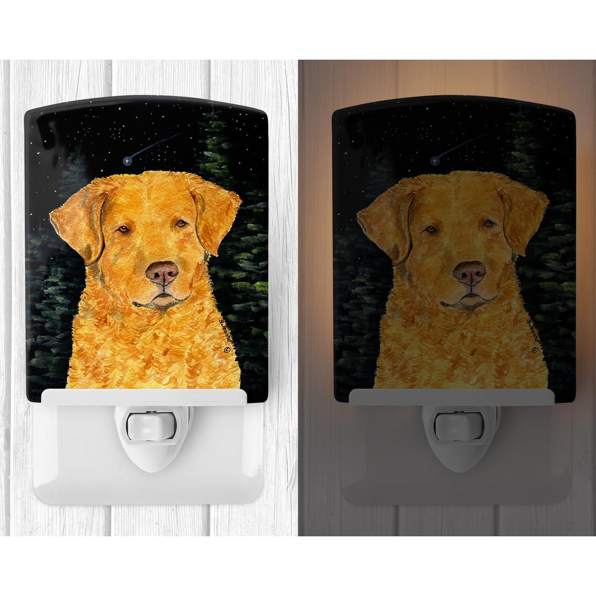Caroline'S Treasures Ss8487Cnl Starry Night Chesapeake Bay Retriever Ceramic Night Light Compact, Ul-Certified, Ideal For Bedroom, Bathroom, Nursery, Hallway, Kitchen, 6X4X3, Multicolor