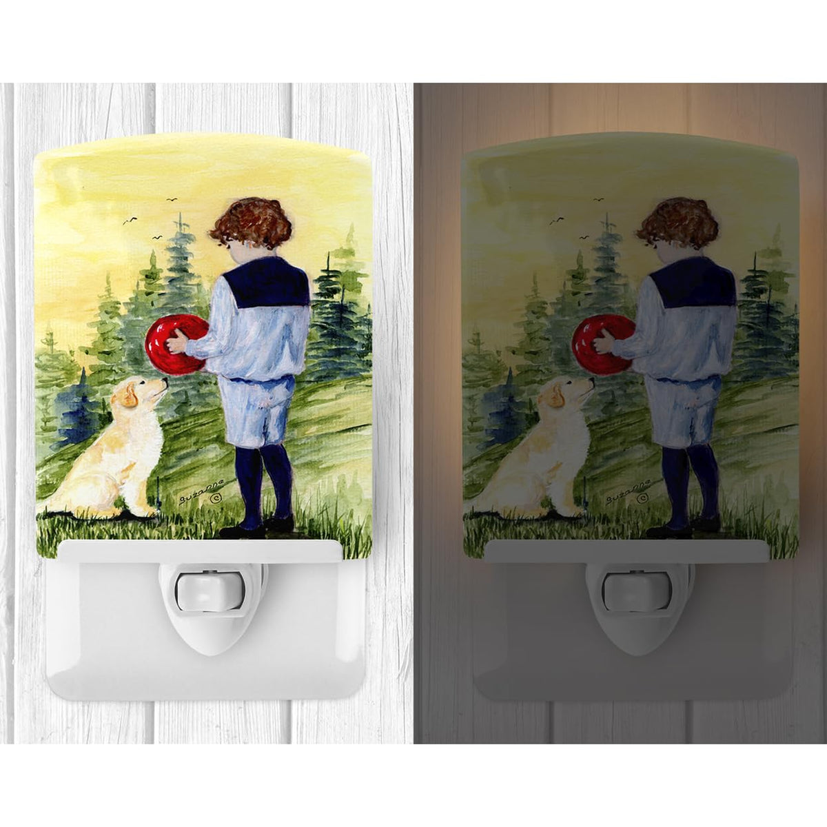 Caroline'S Treasures Ss8530Cnl Little Boy With His Golden Retriever Ceramic Night Light Compact, Ul-Certified, Ideal For Bedroom, Bathroom, Nursery, Hallway, Kitchen, 6X4X3, Multicolor