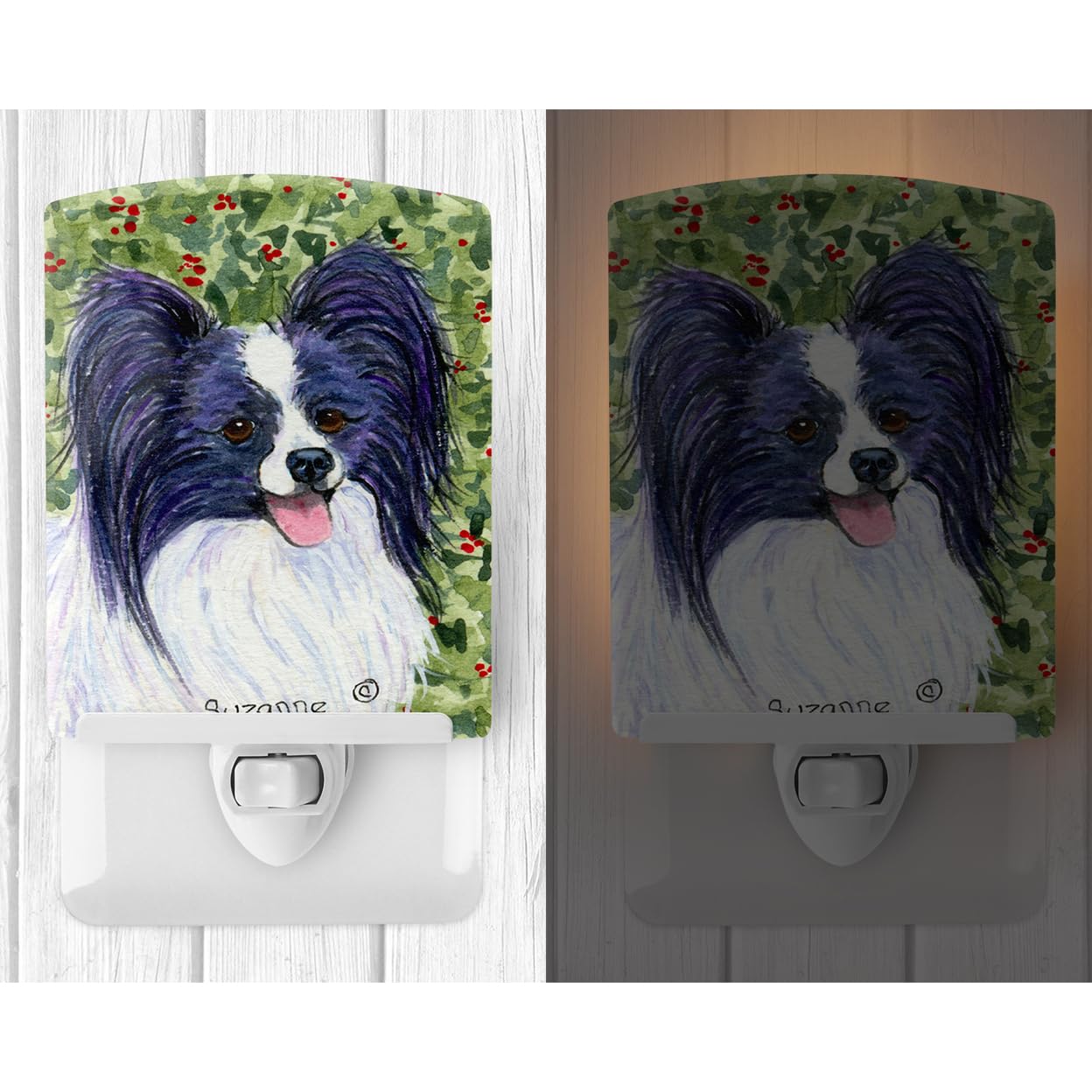 Caroline'S Treasures Ss8811Cnl Papillon Ceramic Night Light Compact, Ul-Certified, Ideal For Bedroom, Bathroom, Nursery, Hallway, Kitchen, 6X4X3, Multicolor