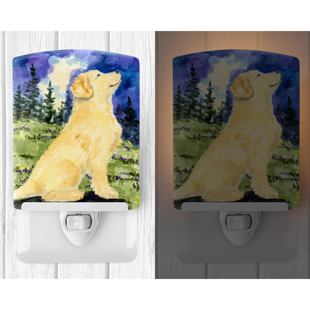 Caroline'S Treasures Ss8977Cnl Golden Retriever Ceramic Night Light Compact, Ul-Certified, Ideal For Bedroom, Bathroom, Nursery, Hallway, Kitchen, 6X4X3, Multicolor