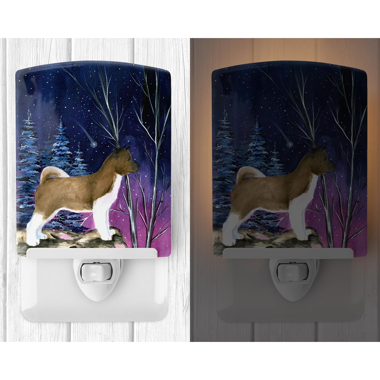 Caroline'S Treasures Starry Night Akita Ceramic Night Light, 6X4X3, Ul-Certified, Multicolor