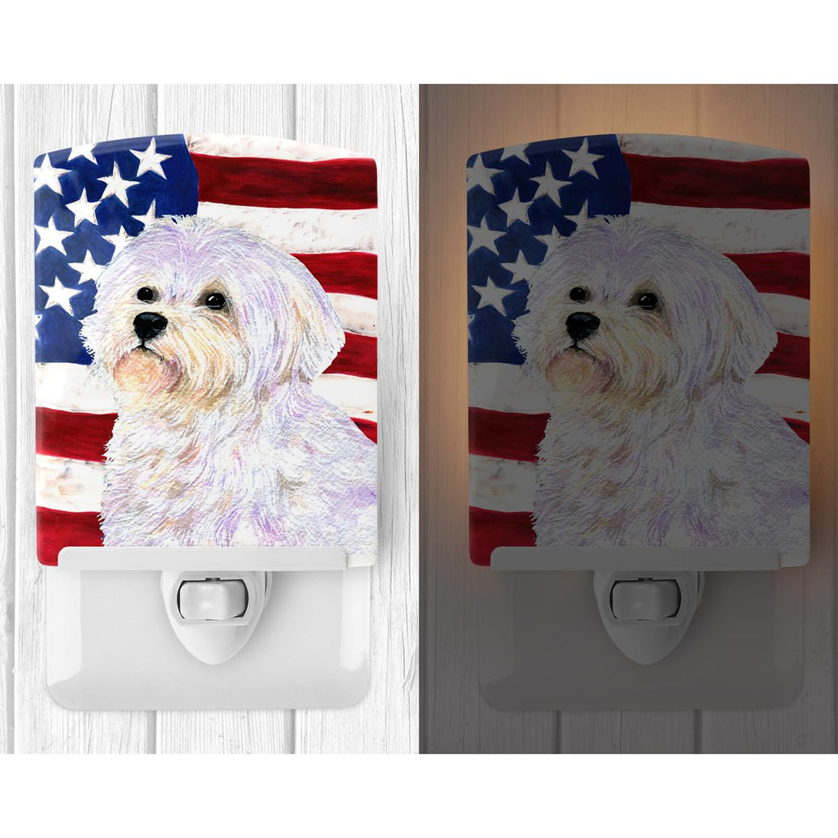 Caroline'S Treasures Usa American Flag Maltese Ceramic Night Light, Ul-Certified, 6X4X3