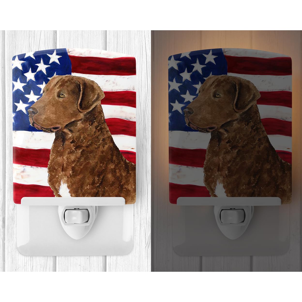 Caroline'S Treasures Usa Flag Curly Coated Retriever Ceramic Night Light, 6X4X3, Ul-Certified
