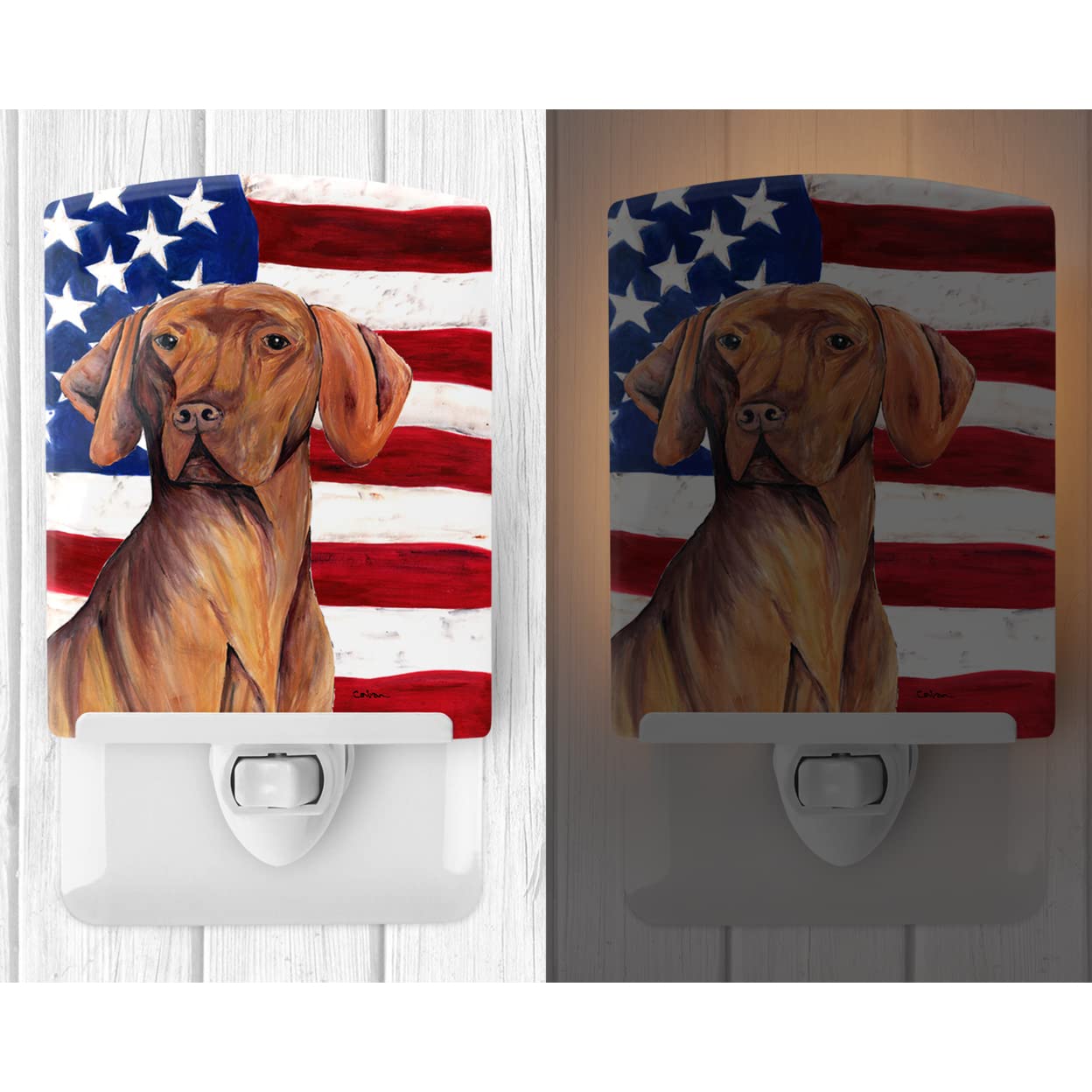 Caroline'S Treasures Vizsla American Flag Ceramic Night Light, Ul-Certified, 6X4X3"