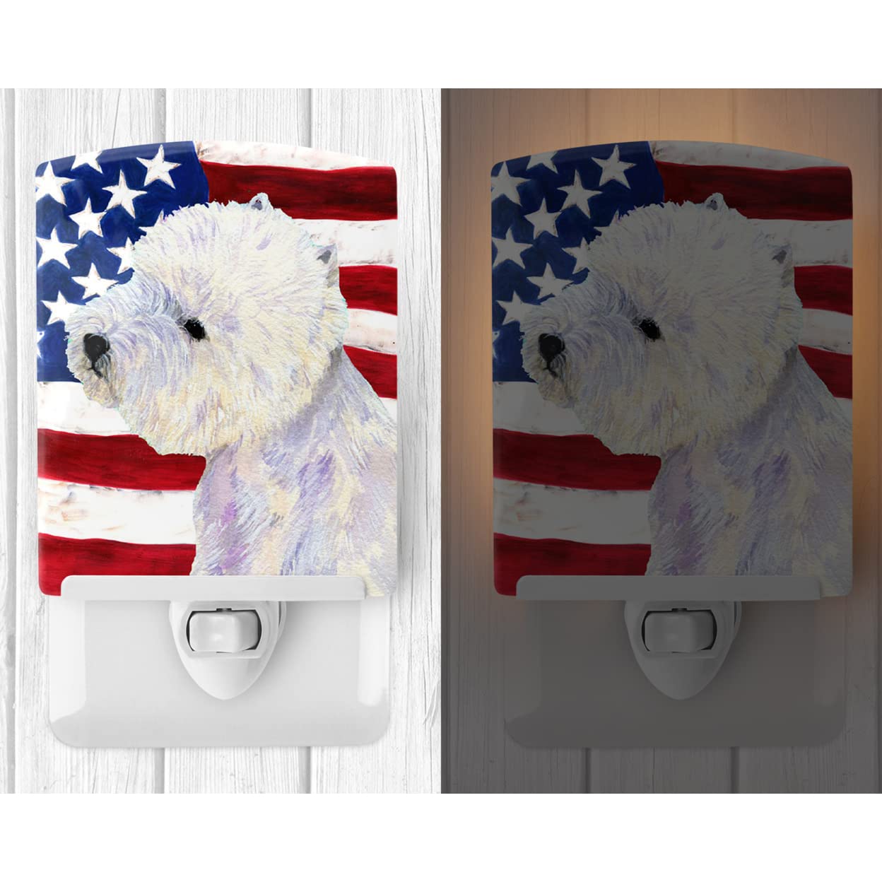 Caroline'S Treasures Westie Ceramic Night Light, Usa Flag Design, Ul-Certified, 6X4X3
