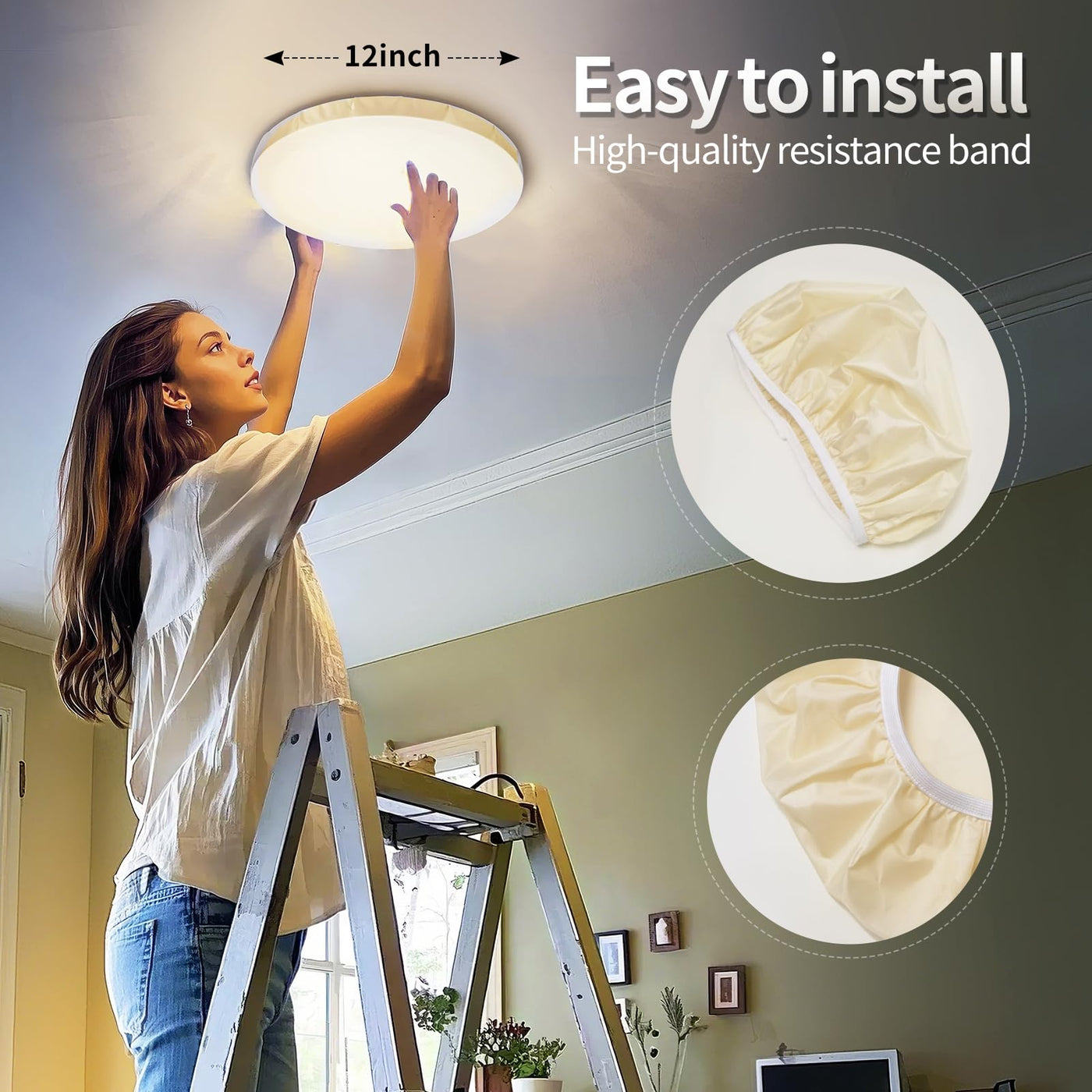 Casazen 12 Inch Ceiling Light Cover 1 Pcs Fabric Flush Mount Light Fixture Cover Ceiling Light 12 Inch Room Cover For Bedroom Kitchen Hallways/Entryways (Warm Yellow)