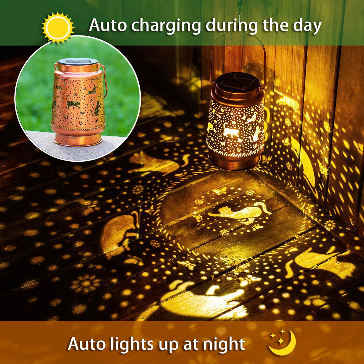 Cat Solar Lanterns Outdoor Waterproof Hanging Solar Lights Cat Gifts For Women Men Metal Decorative Led Cat Lanterns For Garden Decor,Yard,Patio,Lawn,Tabletop,Pathway,Landscape