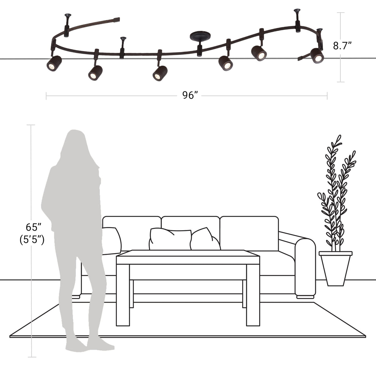 Catalina Lighting 96" 6-Light Integrated Led Flex Track Spotlight Ceiling Light, Oil Rubbed Bronze, For Kitchen, Living Room, Home Lighting