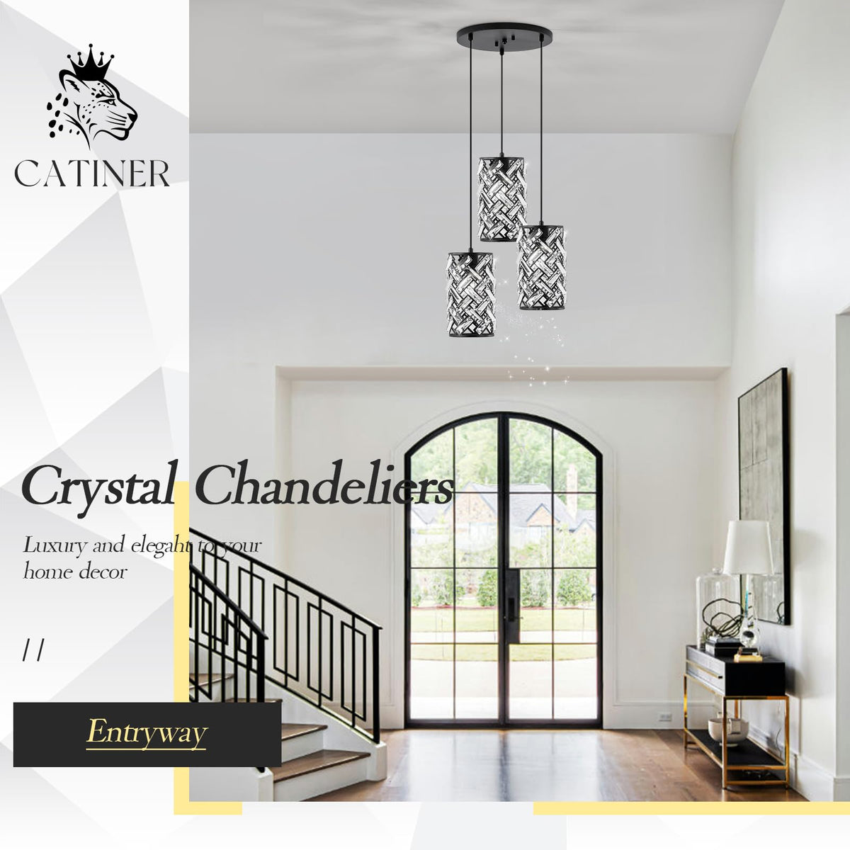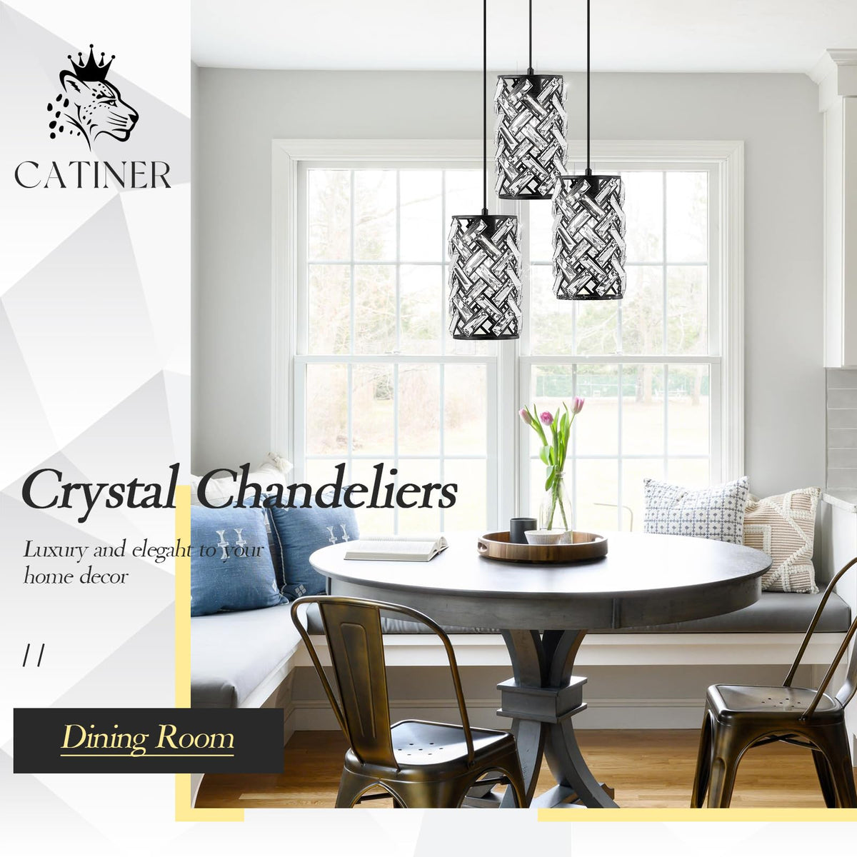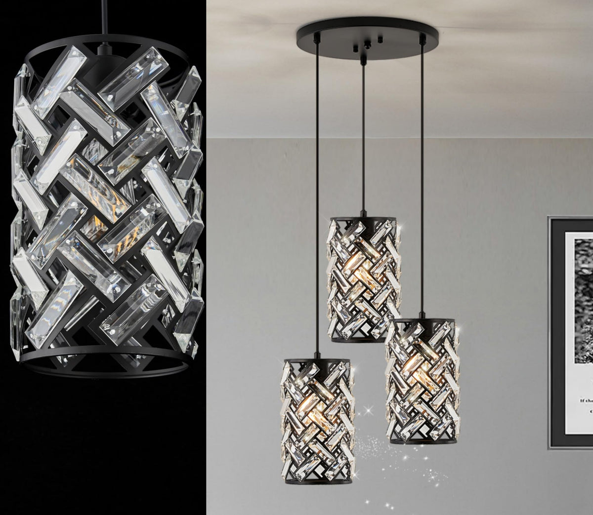 Inspired Design: This 3 Lights Mini Chandelier Combines Metal And Clear Faceted K9 Crystal To Create A Modern And Luxurious Look. The Warm Glow It Emits Offers An Attractive Blend Of Vintage, Retro, And Modern Industrial Charm, Making It Compatible With Most Furnishing Styles And Adding A Beautiful Decorative Touch To Your Home Dimension: Chandelier Base: 11.8 Inches, The Pendant Light Body Measures D5.9'' X H10.4'' Overall. It Is 110-120V Ac Hardwired. All Mounting Hardware And Instructions Are Included For Quick And Easy Installation. Suitable For Both Flat And Sloped Ceilings. Whether You Have A High, Low, Sloped, Or Slanted Ceiling, This Crystal Kitchen Pendant Light Adapts Perfectly Bulb Requirements: This Modern Black Crystal Chandelier Requires 3 X E26 Base Bulb (Max 40 Watts Per Bulb) And Is Compatible With Incandescent, Cfl, Or Led Bulbs. It Is Fully Dimmable When Used With A Dimmable Bulb And Dimmer Switch (Bulb And Dimmer Switch Not Included) Bring Nature Home: This Cluster Gorgeous Pendant Light Features K9 Prismatic Crystal. The Nature-Inspired Design Enhances The Calming Ambiance Of Your Home. Each Crystal Reflects Sunlight, Casting A Rainbow Of Colors And Sparkling Brilliantly, Whether The Light Is On Or Off, Mimicking The Soothing And Restorative Ambiance Of The Outdoors Customer Care: The Crystal Components Of The Chandelier May Break During Transportation; If You Find Any Damage, We Will Provide A Free Exchange. If You Have Any Questions About The Crystal Light Fixture Please Feel Free To Contact Us