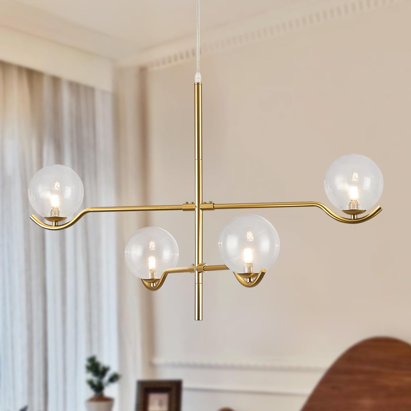 CATINER 4 Lights Gold Sputnik Chandelier, Modern Large L31 '' Mid Century Long Ceiling Pendant Light Fixtures with Clear Glass Globe Shades for High Ceiling Living Room Foyer Dining Room Bedroom