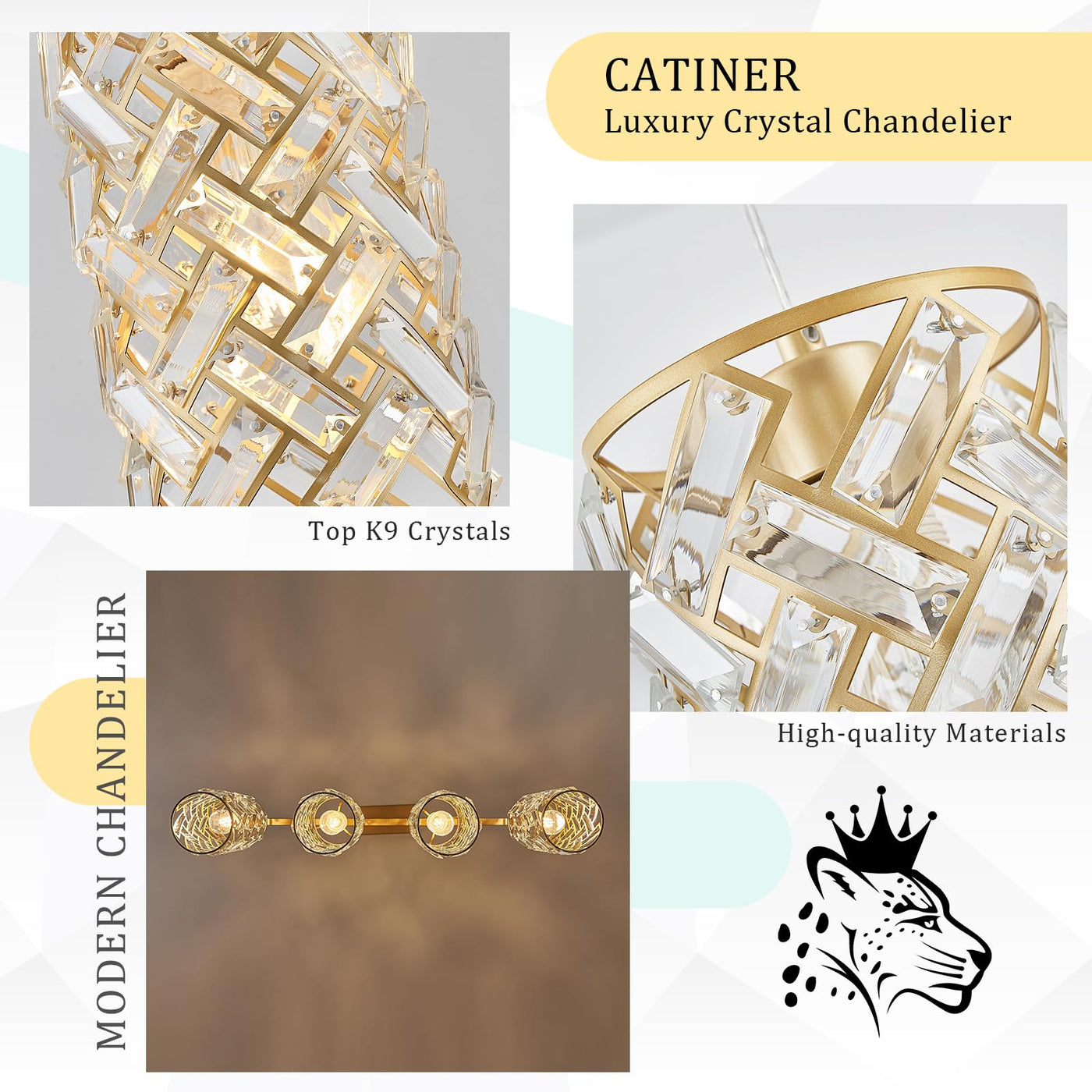 Q: Is the crystal chandelier suitable for outdoor use?A: The CATINER Gold Crystal Kitchen Island Lighting is designed for indoor use, making it ideal for spaces like kitchens, dining rooms, and living rooms. It is not recommended for outdoor use due to potential exposure to the elements.