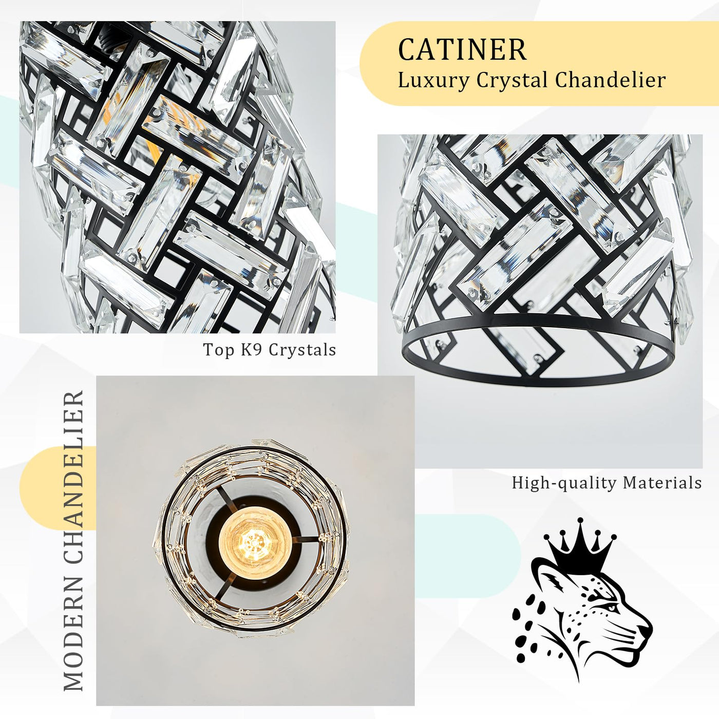 Catiner Modern Black Crystal Pendant Light Fixture - Mini Chandelier For Kitchen Island, Dining Room, Living Room, Hallway, Porc