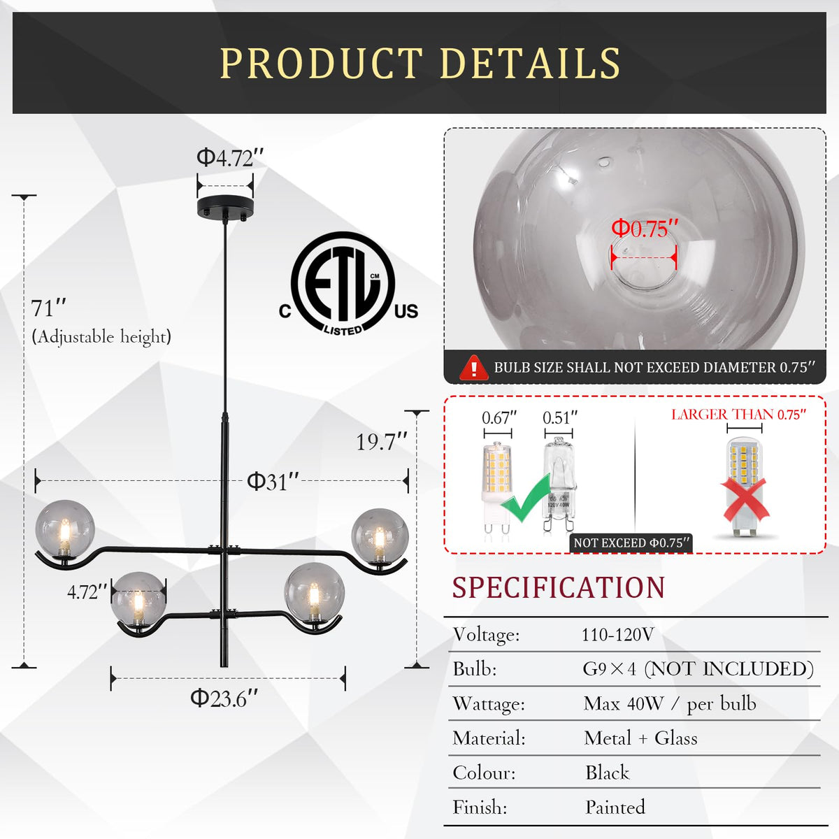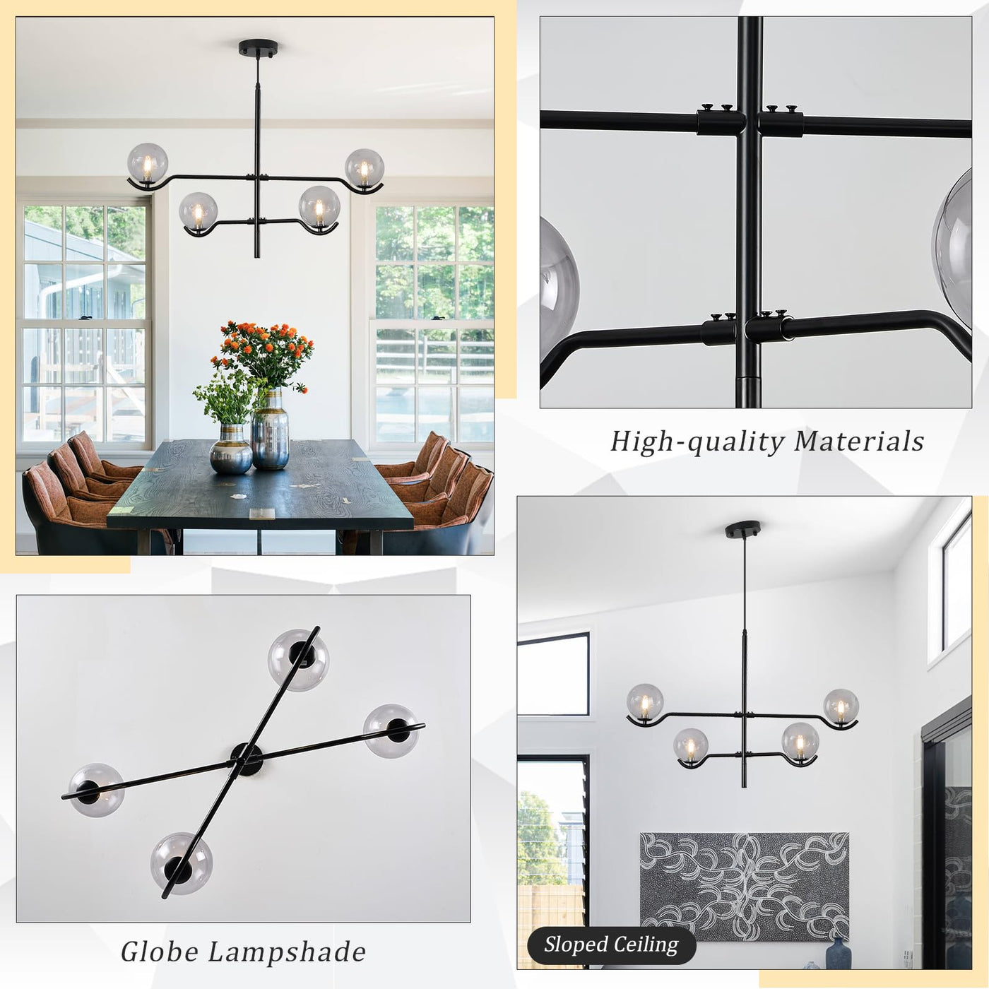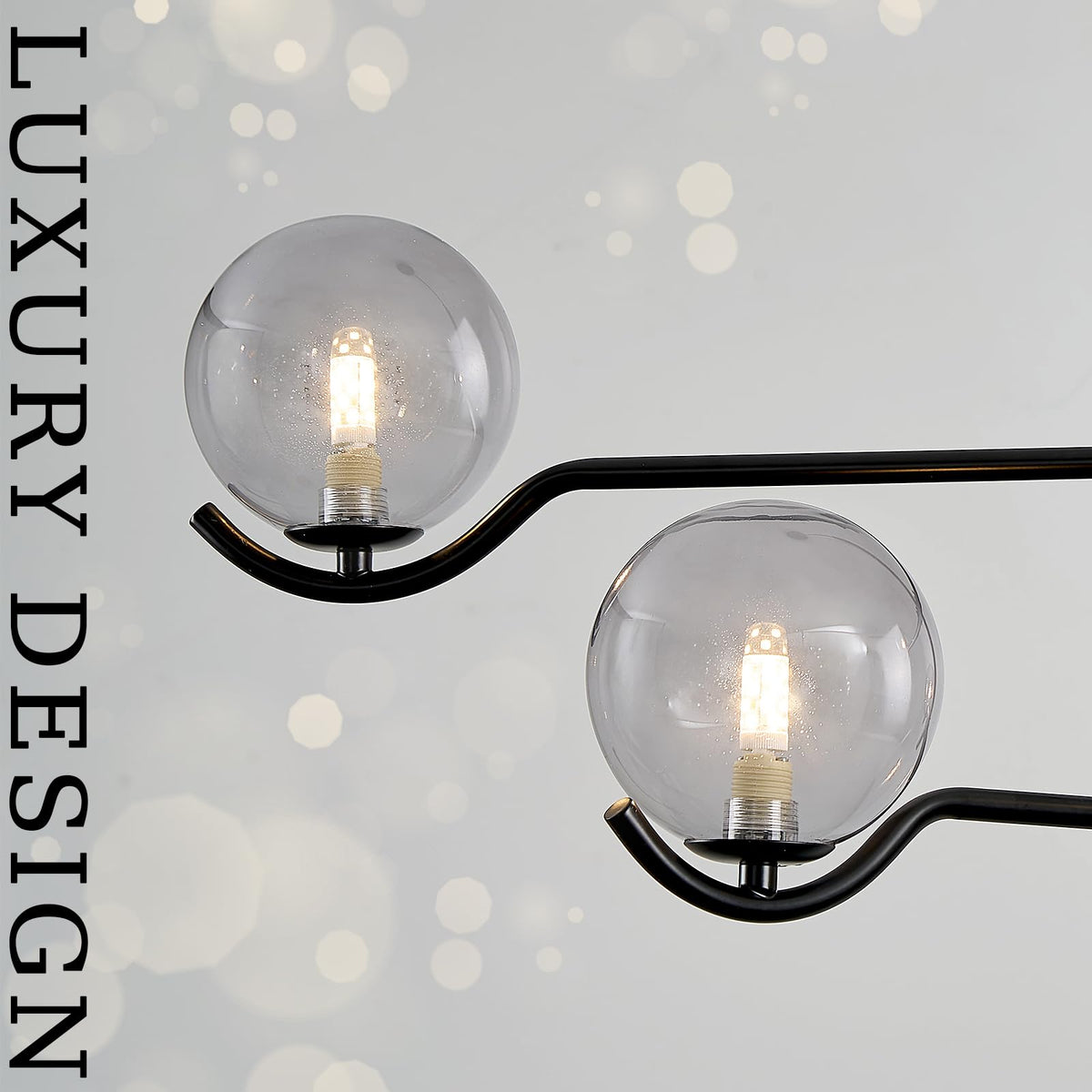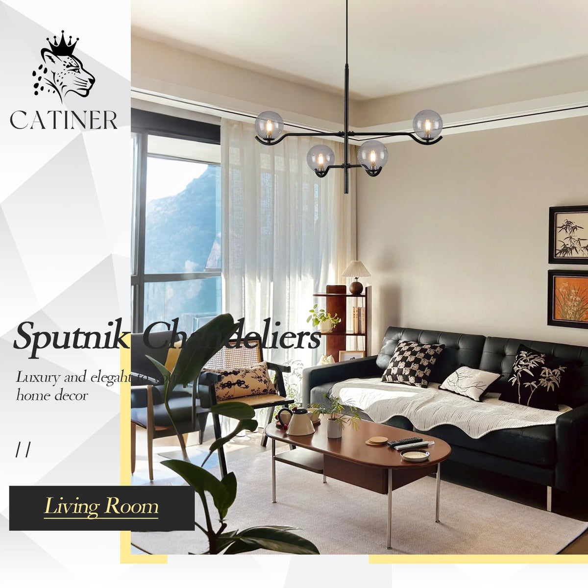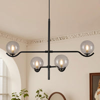CATINER Modern Black Sputnik Chandelier, Large Modern 4 Lights L31 '' Mid Century Long Ceiling Pendant Light with Smoke Gray Glass Globe Shades for High Ceiling Living Dining Room Foyer Bedroom