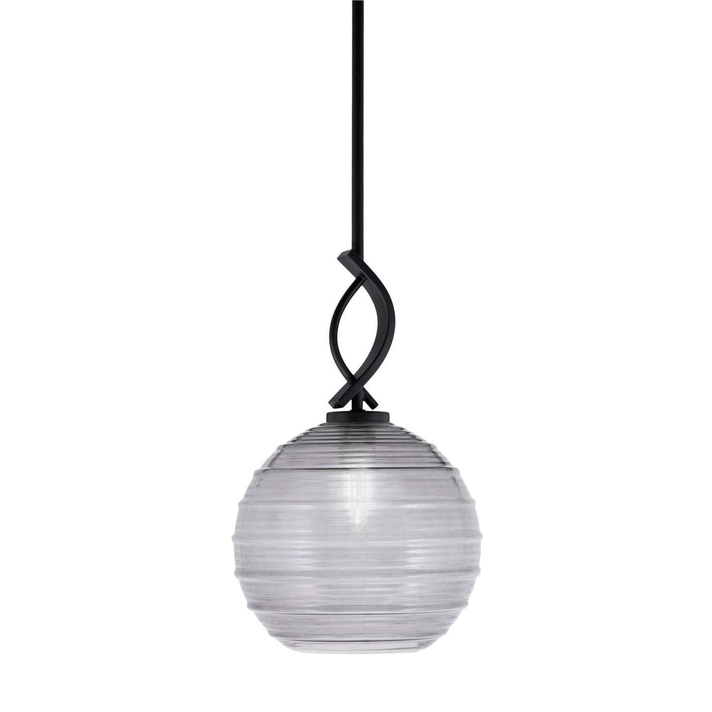 Cavella 1 Light Stem Mini Pendant Shown In Matte Black Finish With 10" Smoke Ribbed Glass