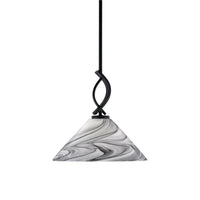 Cavella 1 Light Stem Mini Pendant Shown In Matte Black Finish With 12" Onyx Swirl Glass