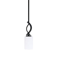 Cavella 1 Light Stem Mini Pendant Shown In Matte Black Finish With 4" White Muslin Glass