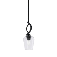 Cavella 1 Light Stem Mini Pendant Shown In Matte Black Finish With 5" Clear Bubble Glass