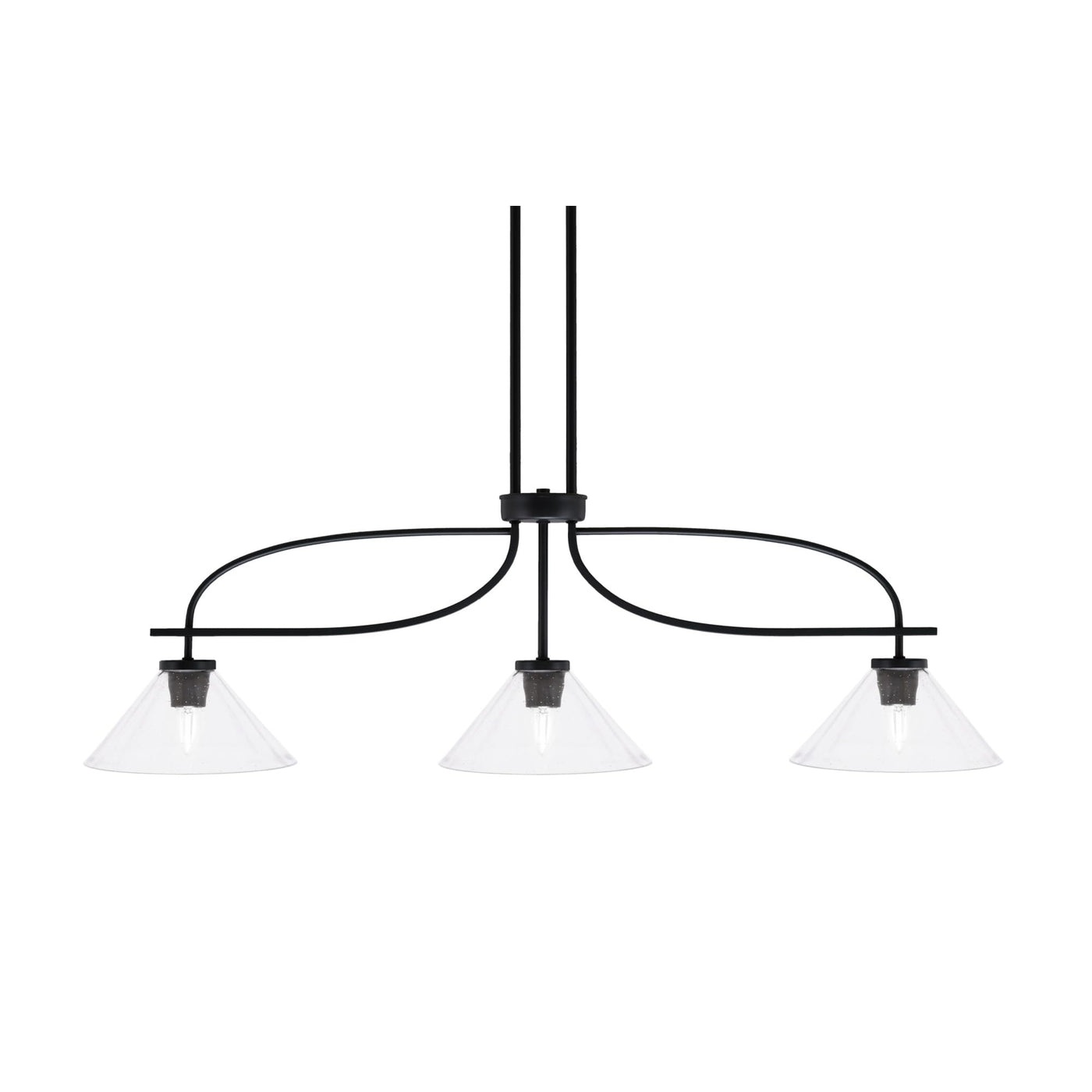 Cavella 3 Light Island Light Shown In Matte Black Finish With 10" Clear Bubble Glass
