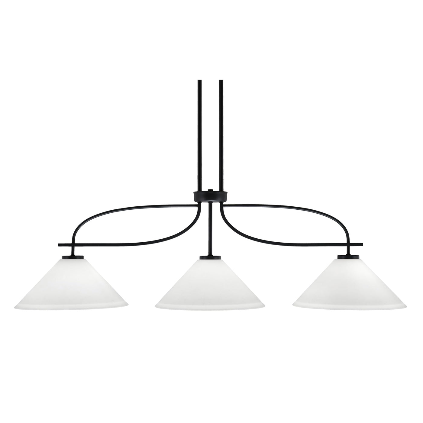 Cavella 3 Light Island Light Shown In Matte Black Finish With 12" White Muslin Glass
