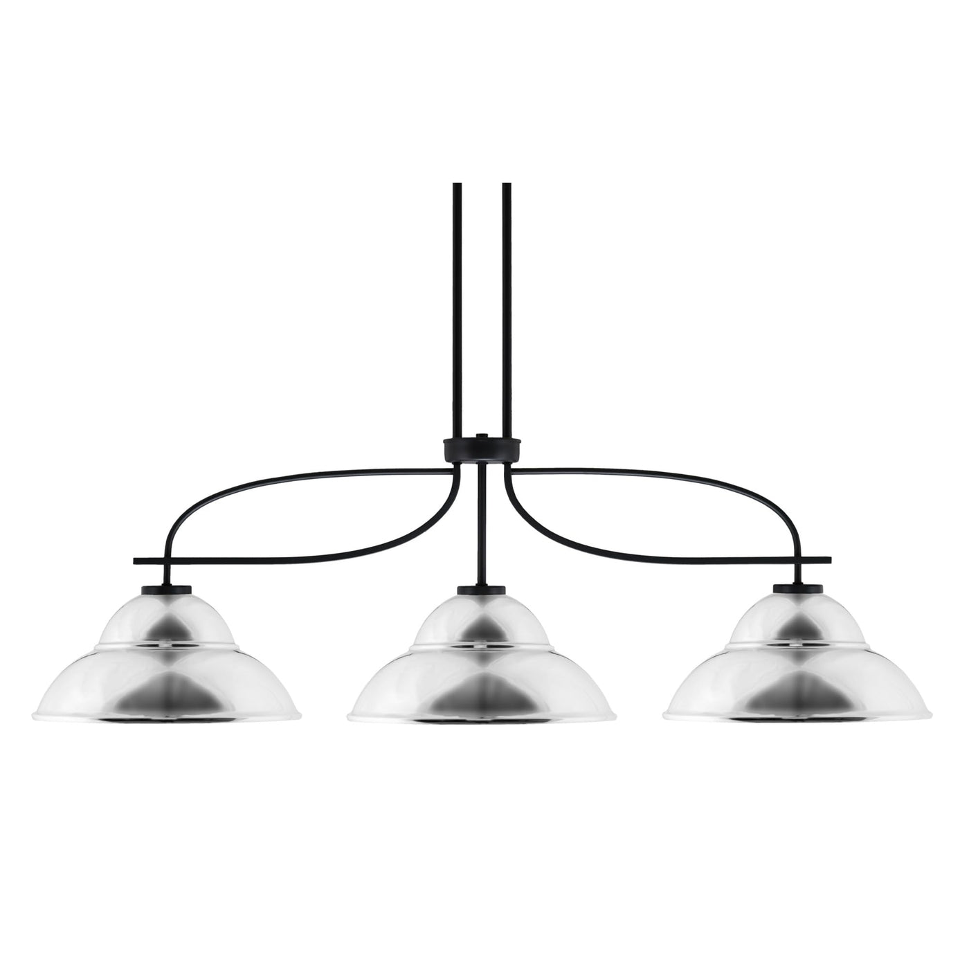 Cavella 3 Light Island Light Shown In Matte Black Finish With 13" Chrome Double Bubble Metal Shades