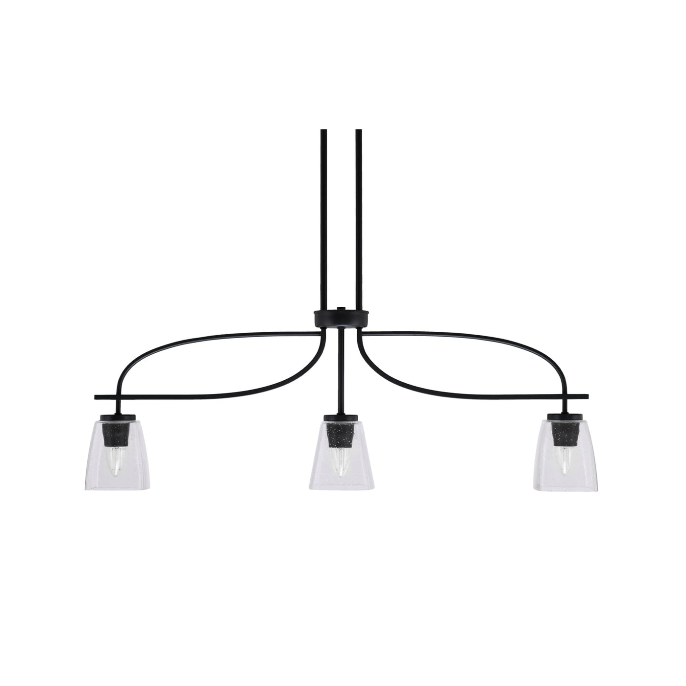 Cavella 3 Light Island Light Shown In Matte Black Finish With 4.5" Square Clear Bubble Glass
