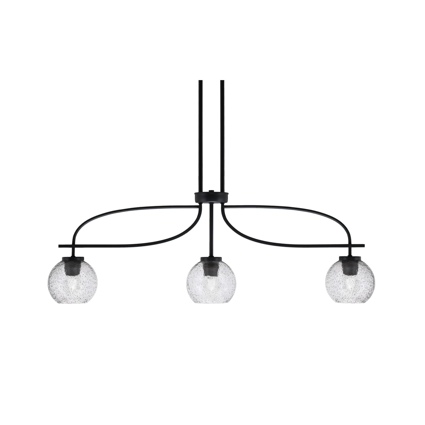Cavella 3 Light Island Light Shown In Matte Black Finish With 5.75" Smoke Bubble Glass