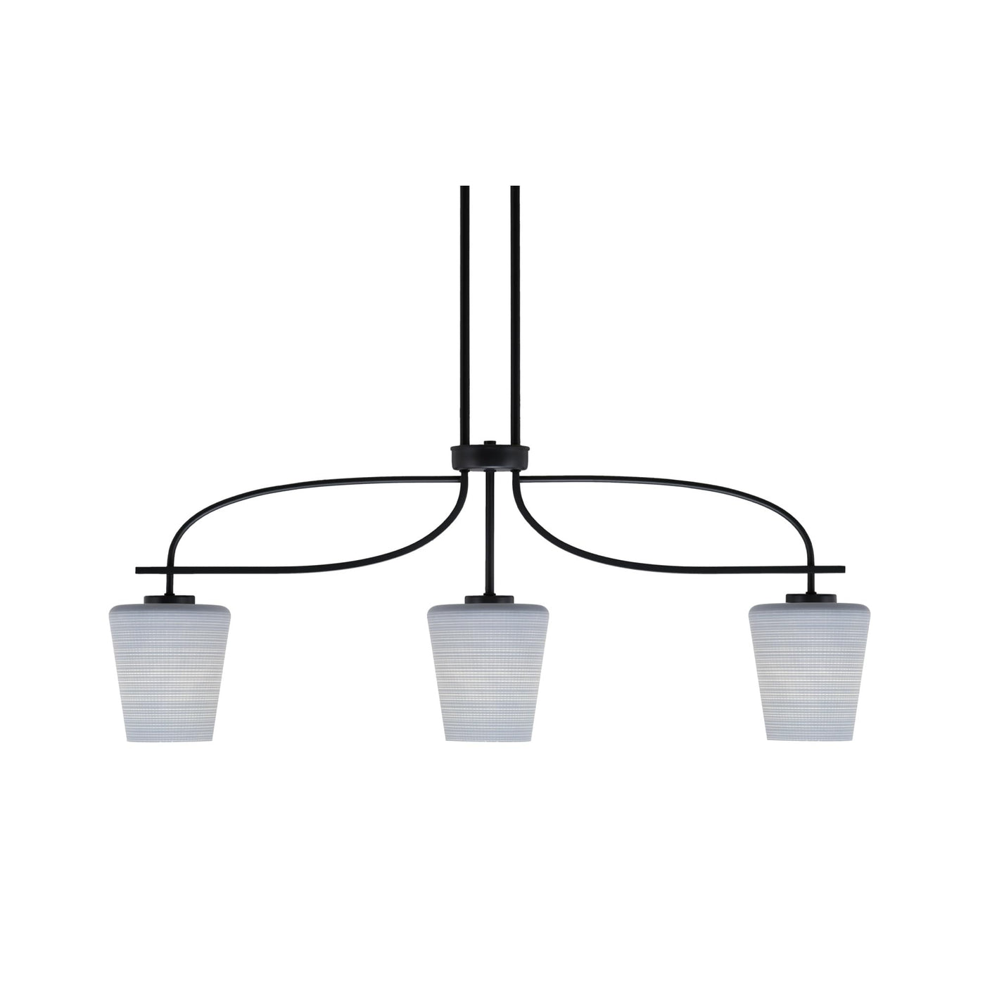 Cavella 3 Light Island Light Shown In Matte Black Finish With 6" Gray Matrix Glass
