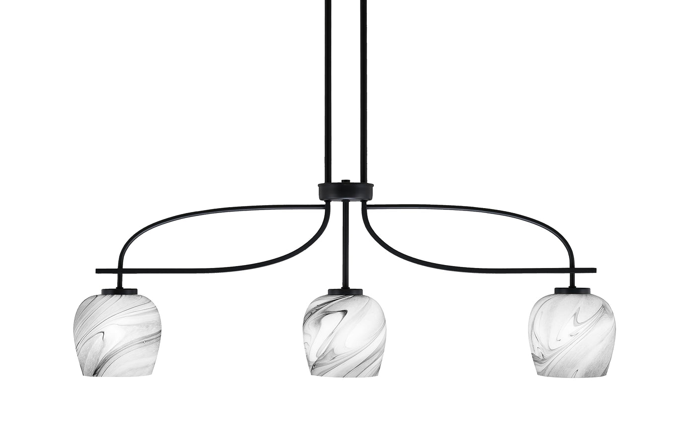 Cavella 3 Light Island Light Shown In Matte Black Finish With 6" Onyx Swirl Glass