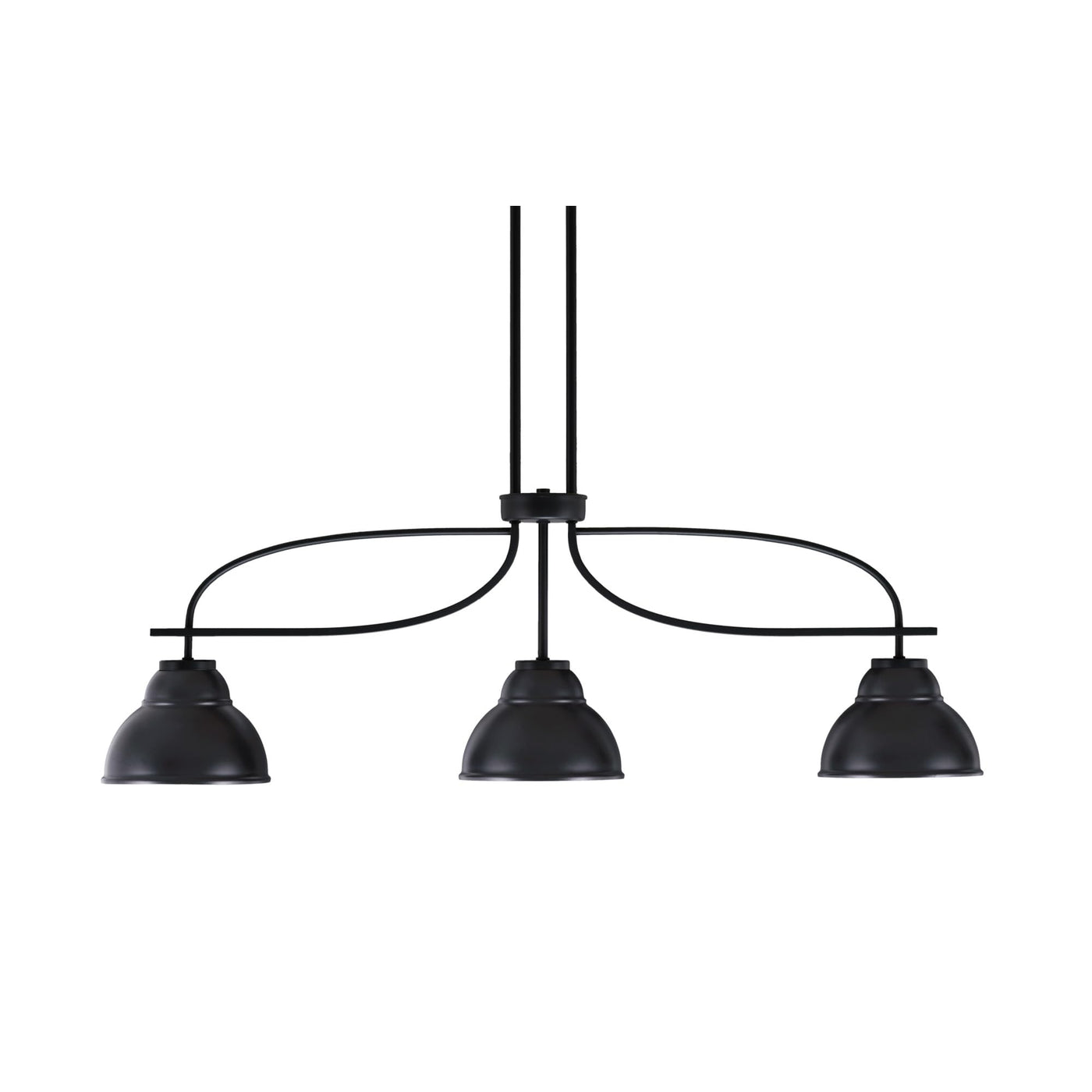 Cavella 3 Light Island Light Shown In Matte Black Finish With 7" Matte Black Double Bubble Metal Shades