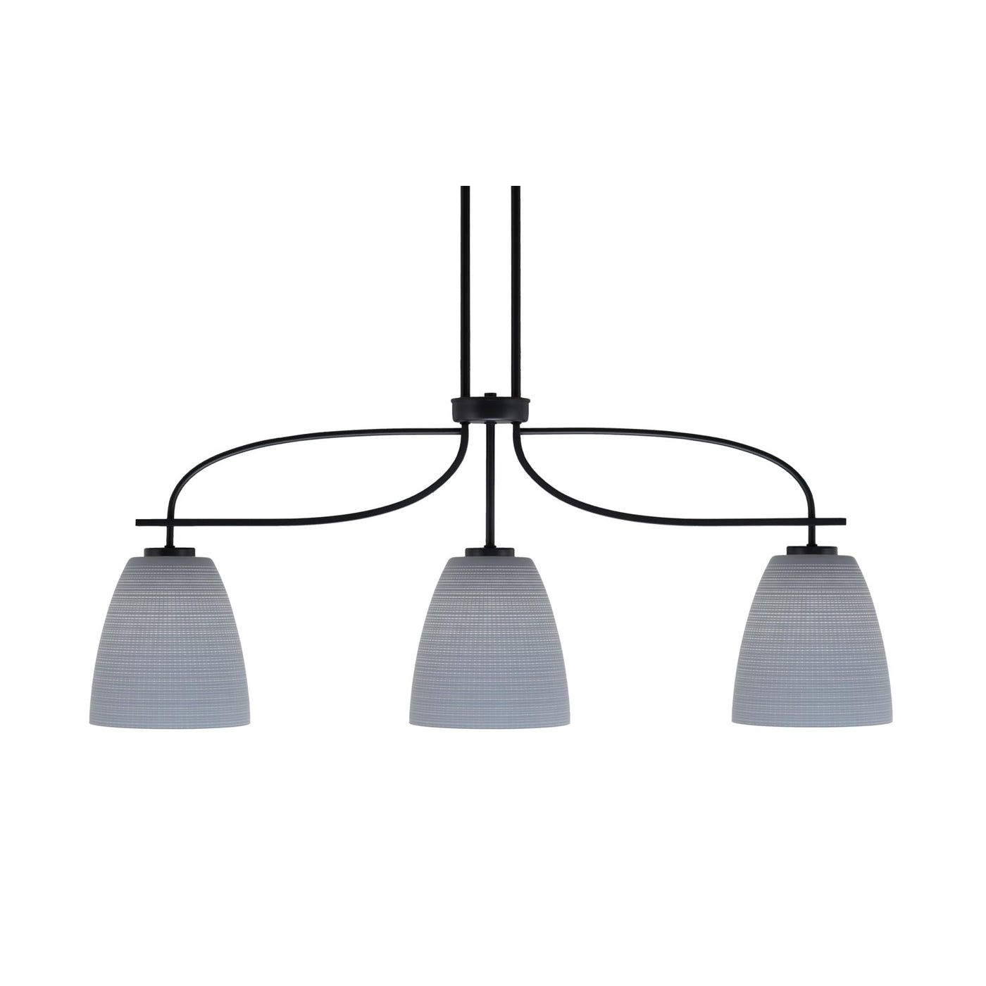 Cavella 3 Light Island Light Shown In Matte Black Finish With 8" Gray Matrix Glass