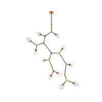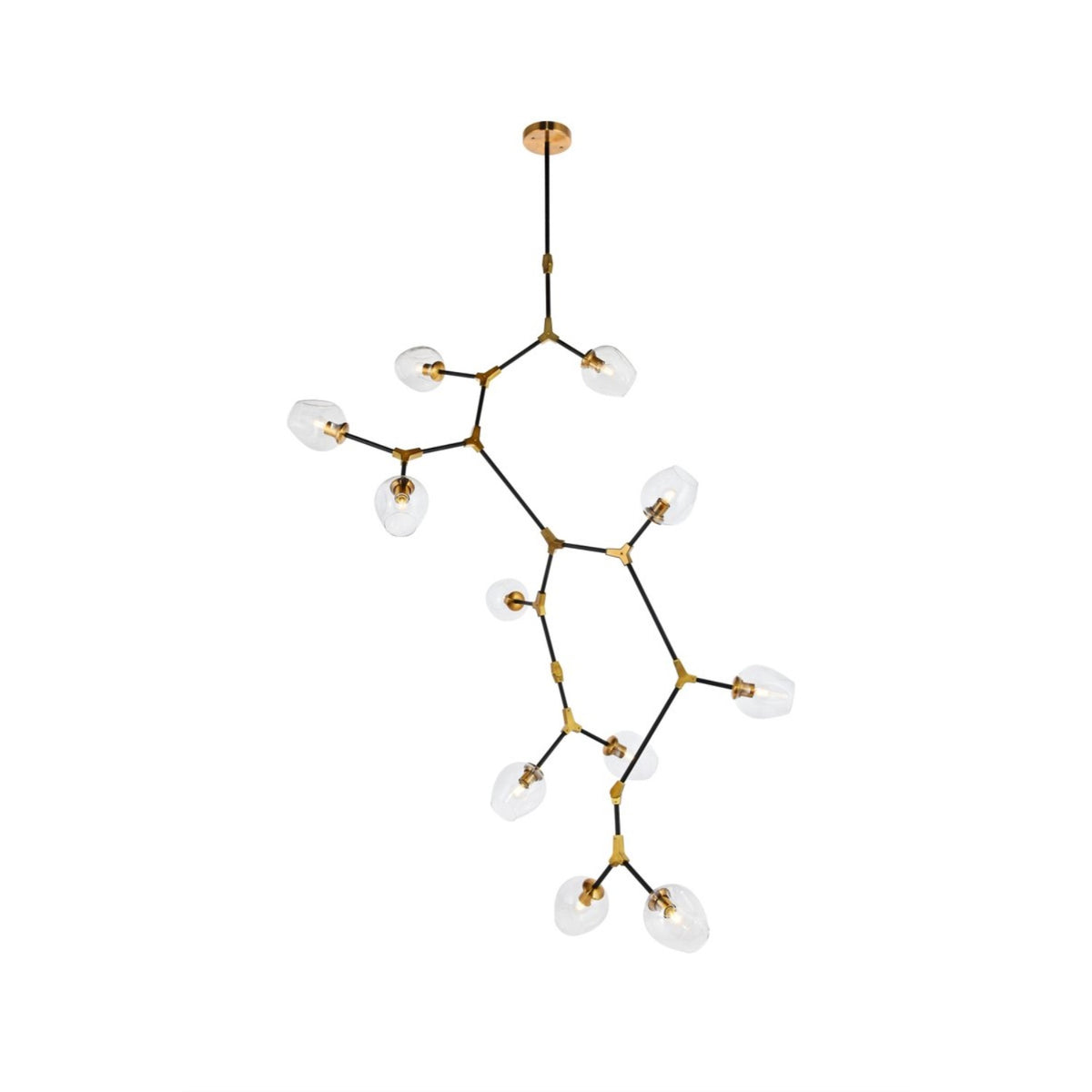 The daring Cavoli pendant lamp in a light antique brass and flat black finish is designed with 11 lights that connect at various angles illuminating your rooms and ridding them of darkness. The winding paths end with a light encapsulated within a clear shade at each point. This contemporary blend of art and function results in this light that will shine beautifully in any space it adorns. Proposition 65 WARNING: This product can expose you chemicals including lead and lead compounds which are known to the State of California to cause cancer and birth defects and other reproductive harm.. For more information go to: www.P65Warnings.ca.gov.
