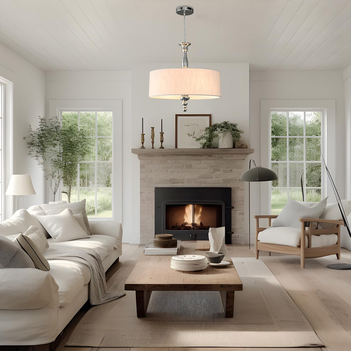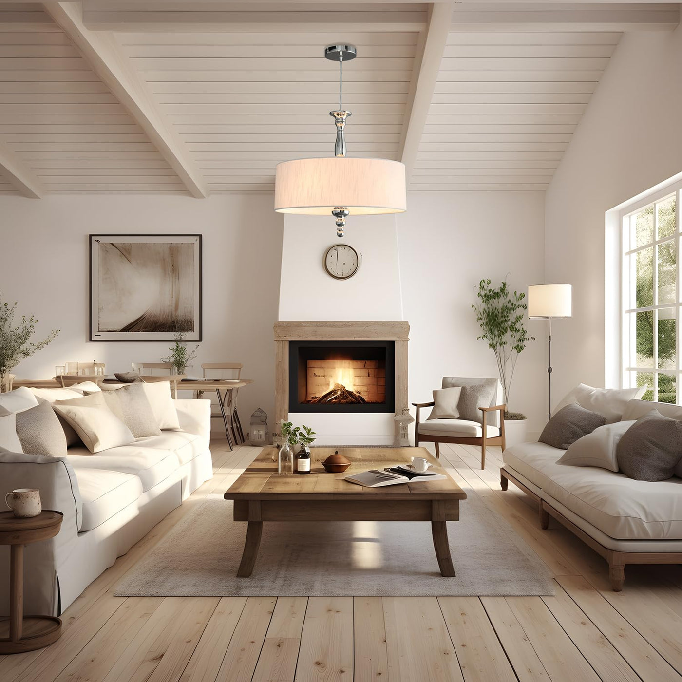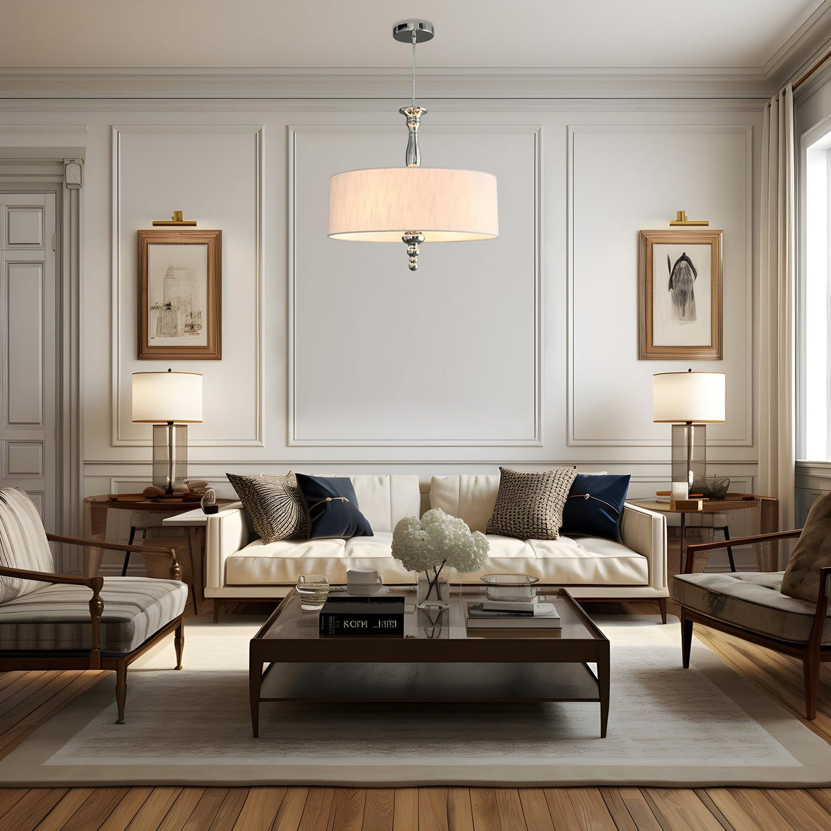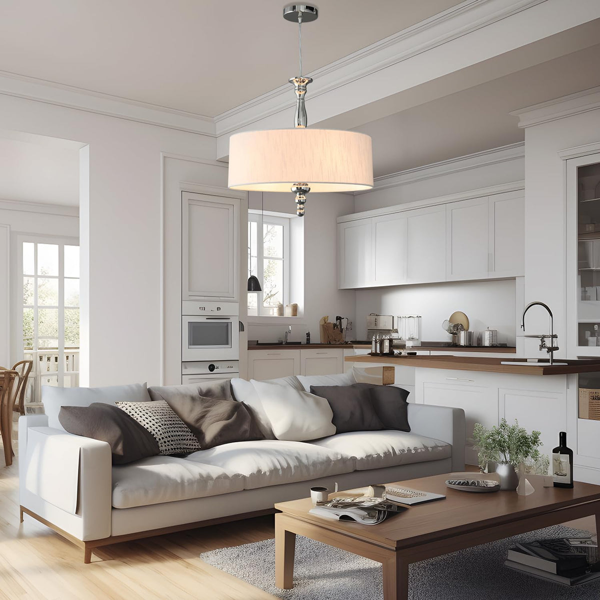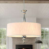 Cawabien 4-Light Drum Chandeliers, Drum Pendant Light Fixture Beige Linen Fabric Shade, Kitchen Chandeliers Over Table,Adjustabl